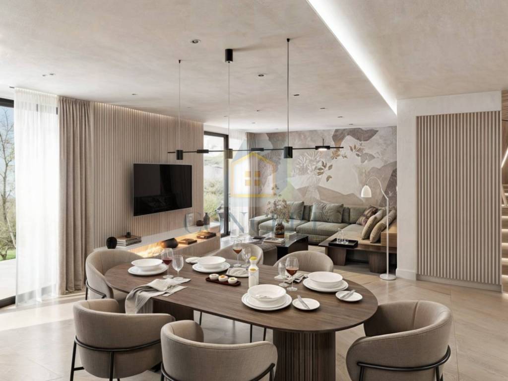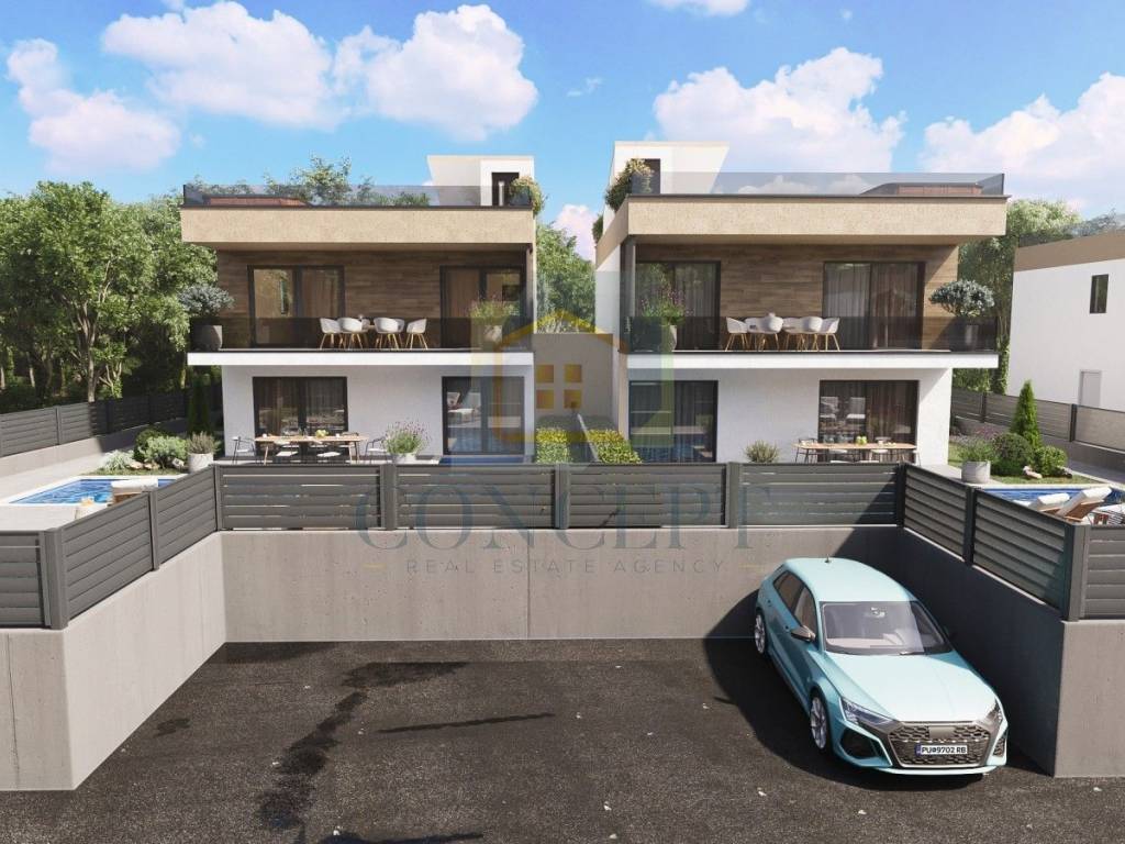 Na odličnoj lokaciji u okolici Novigrada, od kojega su udaljene svega 10 km i 7 km od mora, prodaju se dvije kuće u izgradnji smještene na čestici površine 707 m, pri čemu svaka kuća ima pripadajuće zemljište od 353,5 m. Kuće su istog rasporeda i projektirane su kao preslikane jedinice, svaka s vlastitom okućnicom i bazenom.