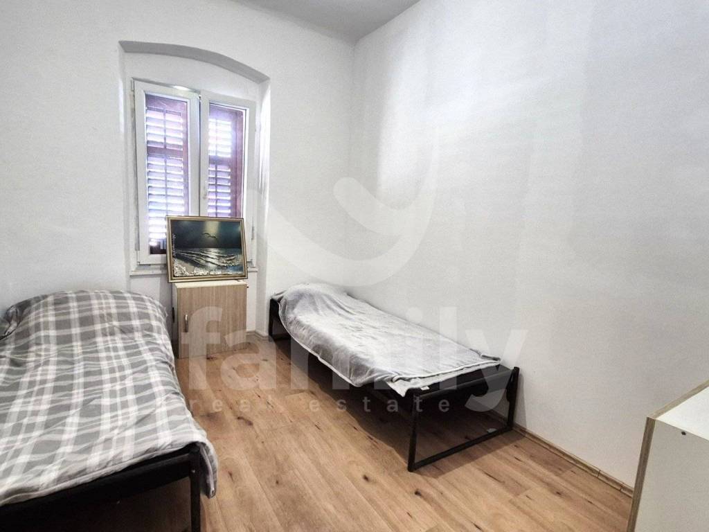 Stan se nalazi na frekventnoj lokaciji sveukupne površine 41 m2. Stan se nalazi u prizemlju kuće te je djelomično renoviran, a time se pruža mogućnost uređenja po vlastitom ukusu. Stan posjeduje manji hodnik sa velikim dnevnim otvorom, kupaonicu manje površine, blagavaonicu koja posjeduje veći dnevni otvor s pogledom na dvorište, dnevni boravak koji je povezan sa kuhinjom i dvije komforne spavaće sobe. Podovi su u cijelom objektu obloženi laminatom dok je u kupatilu postavljena keramika, postavljena je PVC stolarija te je sustav grijanja i hlađenja reguliran putem jedinice klima uređaja. Visoki stropovi također daju nekretnini poseban šarm i pregršt mogućnost za uljepšavanje.