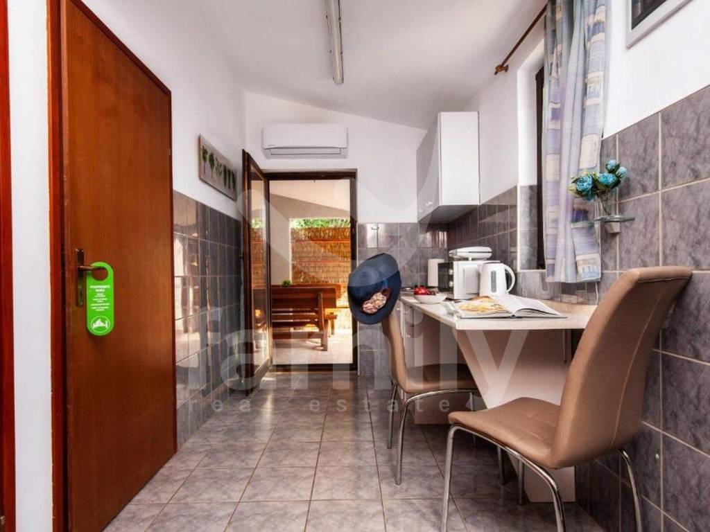 Upravo na području Općine Fažana u mirnom okruženju nalazi se ova višestambena kuća površine 259 m2 sa ukupno tri stana i dva poslovna prostora. Kuća se proteže na dvije etaže, prizemlje i prvi kat te je u prizemlju smješten stan koji se sastoji od tri spavaće sobe, dnevnog boravka, kuhinje, blagovaonice i kupaonice te izlaza na prostranu terasu, a na prvome katu je također prostrani stan u kojem se nalaze dvije spavaće sobe, dnevni boravak, blagovaonica, kuhinja, kupaonica i lođa. U prizemlju ove kuće visokog poslovnog potencijala smještena su još dva poslovna prostora koja su u uspješnom višegodišnjem najmu od kojih je jedan površine cca 29 m2, dok je drugi površine cca 48 m2. U sklopu kuće, a u prizemlju sa odvojenim zasebnim ulazom nalazi se još jedan apartman površine cca 43 m2 sa dvije spavaće sobe, dnevnim boravkom sa kuhinjom i blagovaonom te kupaonicom. Objekat je okružen okućnicom površine oko 400 m2 te se nalazi na veoma mirnoj lokaciji u blizini svih popraznih sadržaja neophodnih za svakodnevni život poput trgovina, škole, vrtića, restorana, šetnice, plaže itd. Također, kuća je spremna za useljenje ili pak određenu adaptaciju po želji budućeg vlasnika, a opremljena je trenutno drvenom stolarijom u dobrome stanju, sustavom grijanja i hlađenja putem klima uređaja i peći na drva te posjeduje urednu dokumentaciju i odvojena brojila struje i vode. Orijentacija objekta je idealna jugozapadna što je također jedna velika prednost kod odabira nekretnine.