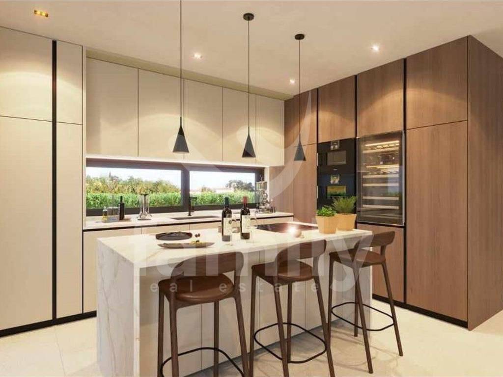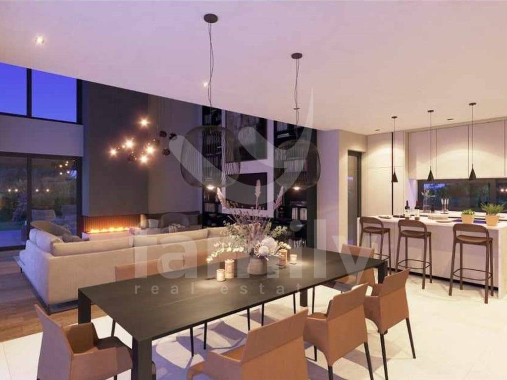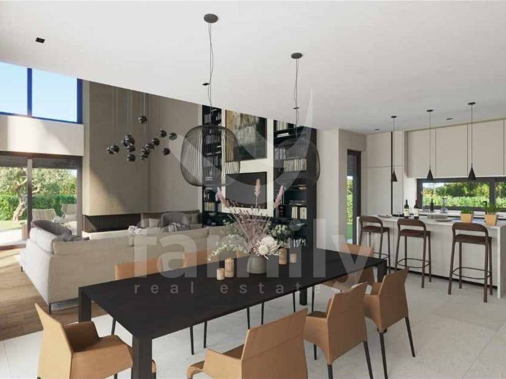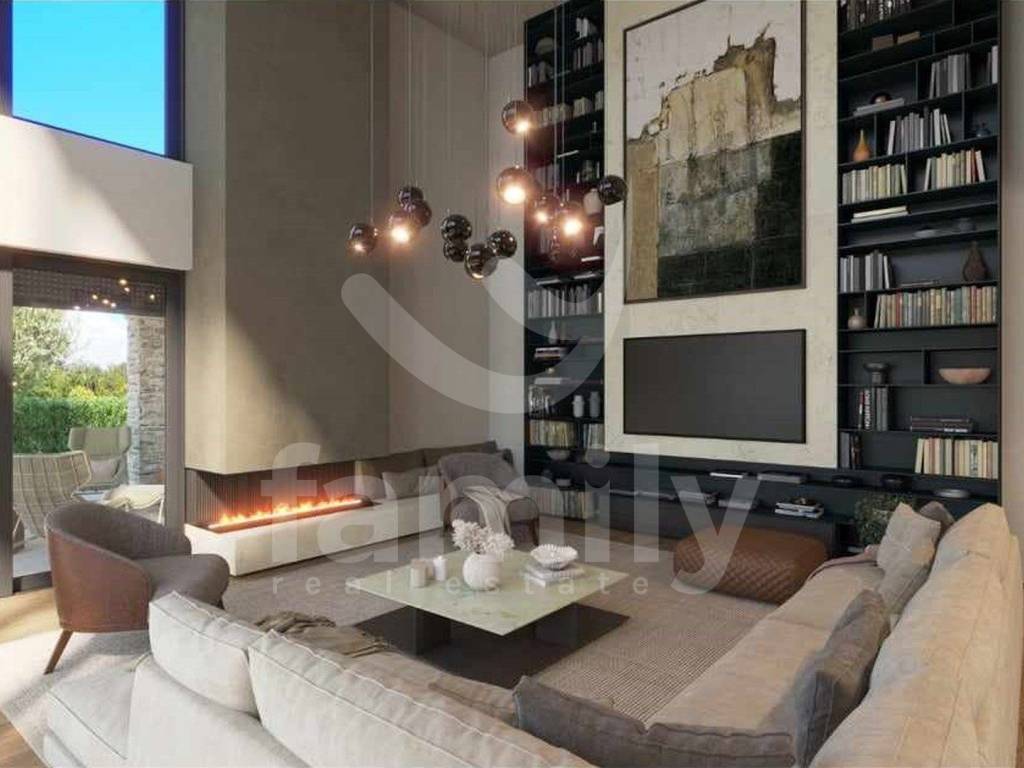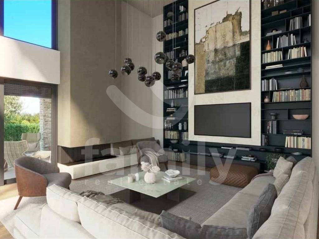 U prizemlju se nalazi dnevni dio otvorenog koncepta prostora koji ujedinjuje dnevni boravak sa kaminom s dva lica, blagovaonicu i kuhinju s izlazima na natkrivene terase, spavaća soba s vlastitom kupaonicom i izlazom na natkrivenu terasu, gostinjski toalet i tehnička prostorija. Unutrašnjim stepeništem prilazi se katu na kojem se nalaze tri spavaće sobe s vlastitim kupaonicama i dvije natkrivene terase. Hlađenje i grijanje osigurano je sustavom podnog grijanja i Mitsubishi klima jedinicama. U izgradnji ove prekrasne vile koristili su se vrhunski i kvalitetni materijali i uređaji. Okućnica je ambijentalno i hortikulturno uređena i ograđena. Parking je privatni i također ograđen. Video nadzor je u visokoj rezoluciji i postavljen je i alarmni sustav. Potpuni sklad pruža natkrivena ljetna kuhinja s toaletom i spremištem i preljevni bazen površine 60 m² sa sunčalištem pokraj kojeg je elegantno integriran jacuzzijem s otvorenim ognjištem.