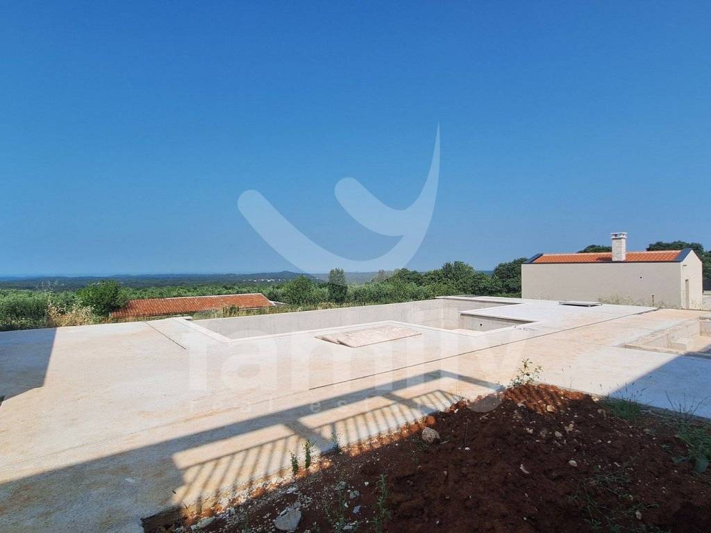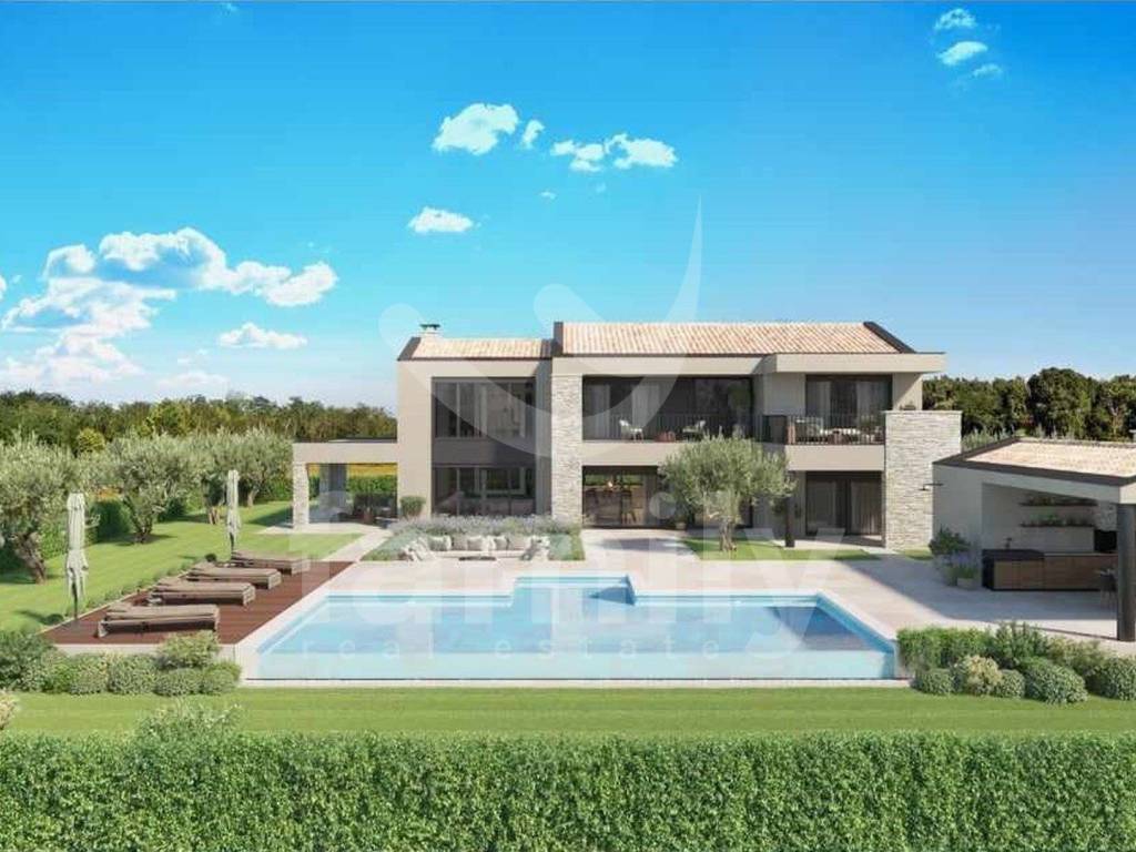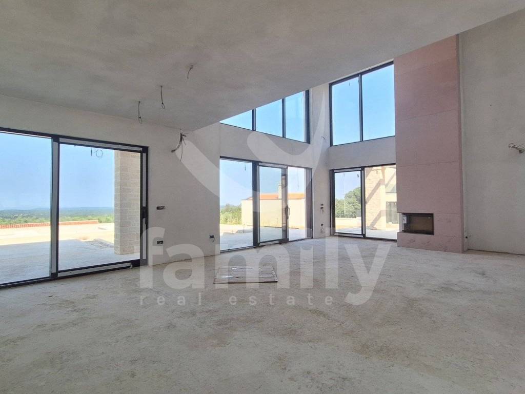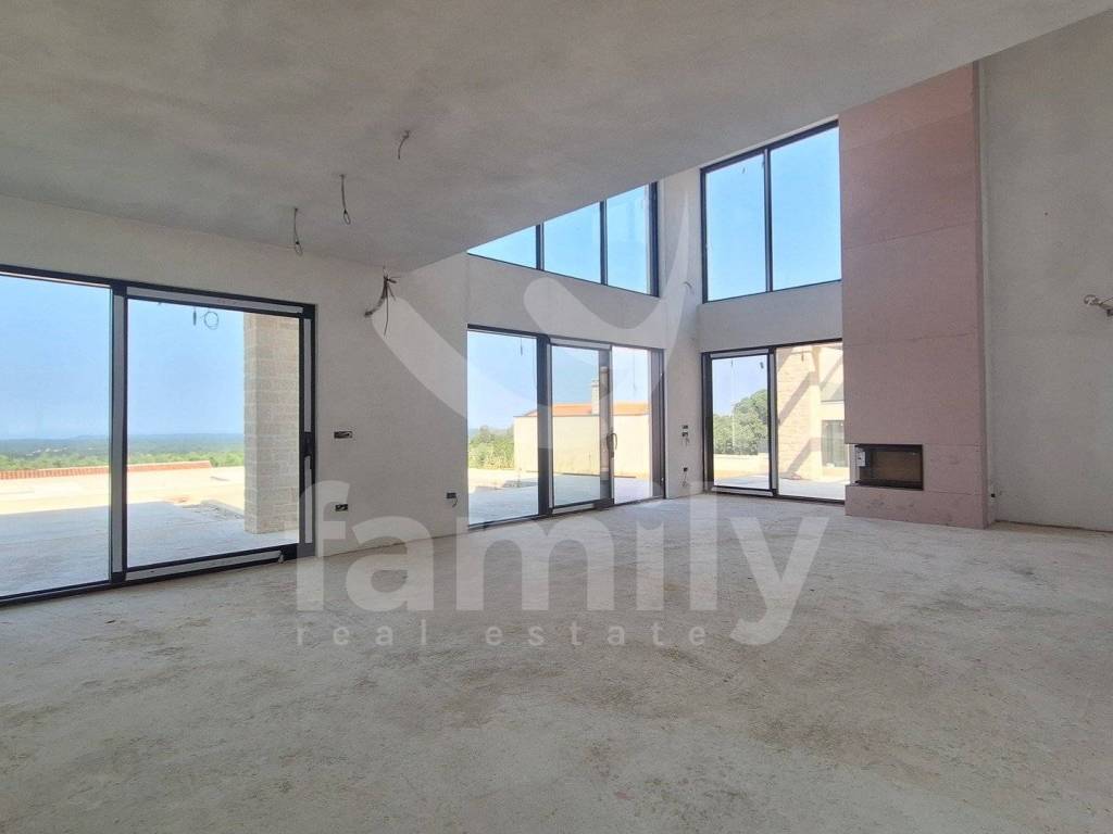Nedaleko od grada Poreča, na prodaju je impozantna vila s pogledom na more. Smještena je u šarmantnom naselju s panoramskim pogledom na more, alpe i okolicu, okružena zelenilom, vinogradima, maslinicima, obiteljskim kućama i kućama za odmor te je građena prema najvišim standardima za stambenu izgradnju. Nekretnina atraktivnog eksterijera je savršeno uklopljena u krajolik koji je okružuje a jednako usklađen interijer i skladno planirane prostorije. Veliki broj staklenih stijena osigurava maksimalan prodor vanjske svjetlosti koja naglašava prostor te istodobno povezuju unutarnji s vanjskim prostorom. Vila je osmišljena kao jedna stambena jedinica koja se proteže na dvije etaže.