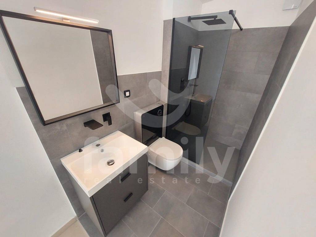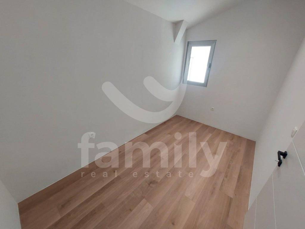 Spomenuta nekretnina se nalazi na drugom katu unutar manje zgrade sveukupne površine 66 m2. Stan se sastoji od hodnika površine 5,86 m2, dnevnog boravka i kuhinje sveukupne površine 15,54 m2 koja je popločena keramikom, kupaone od 5,27 m2, jedne prostrane spavaće sobe od 16,52 m2 i jedne spavaće sobe dimenzije 9,60 m2 kao i jedne kupaone od svega 4,08 m2 i hodnikom površine 2,79 m2. Stan dodatno krasi i loggia od sveukuopne površine 6,97 m2 popločena pločicama. Stan je opremljen ugodnim neutralnim tonovima i modernijeg je izgleda. Dobro osmišljen raspored čini spomenutu nekretninu zanimljivu. Prozori su s velikim otvorima aluminijske stolarije u svijetlo sivom tonu i protuprovalnim ulaznim vratima. Stan posjeduje jedinicu klima uređaja. Stan je u zgradi koja ima dostupnost s liftom.