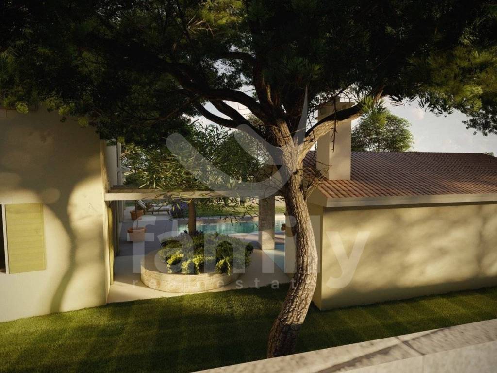 Građevinsko zemljište na mirnoj lokaciji sveukupne površine 897 m2 s ishodovanom građevinskom dozvolom i plačenim komunalijama. Zemljište se nalazi na samom rubu sela i urbaniziranom djelu s pozicijom okrenutom prema jugozapadu. Čestica ima prilaz s asfaltirane ceste i blagog je nagiba. Zemljište je lijepog i pravilnog oblika okruženo zelenilom i dvijema kućama.