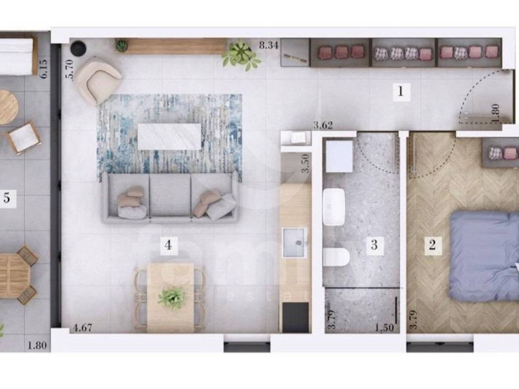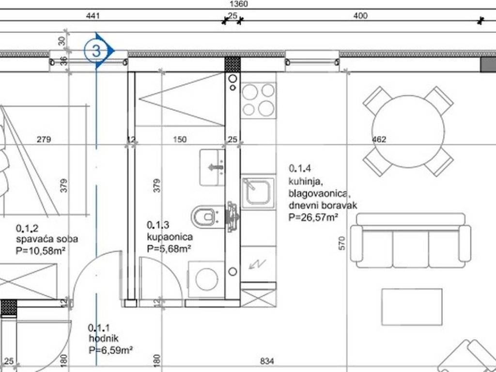 Nedaleko od Rovinja, u jednom mirnom naselju planirana je izgradnja manje stambene zgrade sa sveukupno četiri stana. Početak gradnje planiran je 2025. godine, obzirom da je građevinska dozvola ishodovana, a završetak 2026. godine. Upravo ova buduća visokokvalitetna novogradnja posjedovat će stan u prizemlju površine 58,32 m2. Stan će se sastojati od ulaznog predprostora, otvorenog koncepta prostranog dnevnog boravka sa blagovaonicom i kuhinjom, kupaonice, spavaće sobe i prostrane terase. Okućnica i parkirno mjesto su dio ovog budućeg prelijepog stana što osigurava dodatni komfor za buduće vlasnike. Tijekom opremanja stana bit će pažljivo odabrani materijali, postavit će se talijanska keramika u cijelom stanu, osim u spavaćoj sobi gdje je predviđena drvena podna obloga, a stolarija će biti troslojnog stakla, PVC bijele boje sa aluminijskom vanjskom oblogom antracit boje i aluminijske rolete sa elektronskim podizačima. Sustav grijanja i hlađenja bit će reguliran putem MultiSplit sustava, dok će podno grijanje biti postavljeno u kuhinji i kupaonici. Planirana je visokokvalitetna gradnja i moderan stil fasade sa kamenim oblogama, demit debljine 10 cm, a na parceli su predviđena tri električna punjača za vozila, što budućim vlasnicima omogućuje praktično i i ekološki održivo rješenje za punjenje osobnih automobila. Lokacija je idealna u smislu mirnog naselja, a opet nedaleko od popratnog sadržaja neophodnog za svakodnevni život te se nalazi na svega 7 km od atraktivnog Rovinja. Cijena je izražena sa PDV-om što predstavlja mogućnost umanjenja za isti prilikom kupovine putem tvrtke.