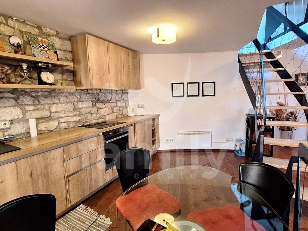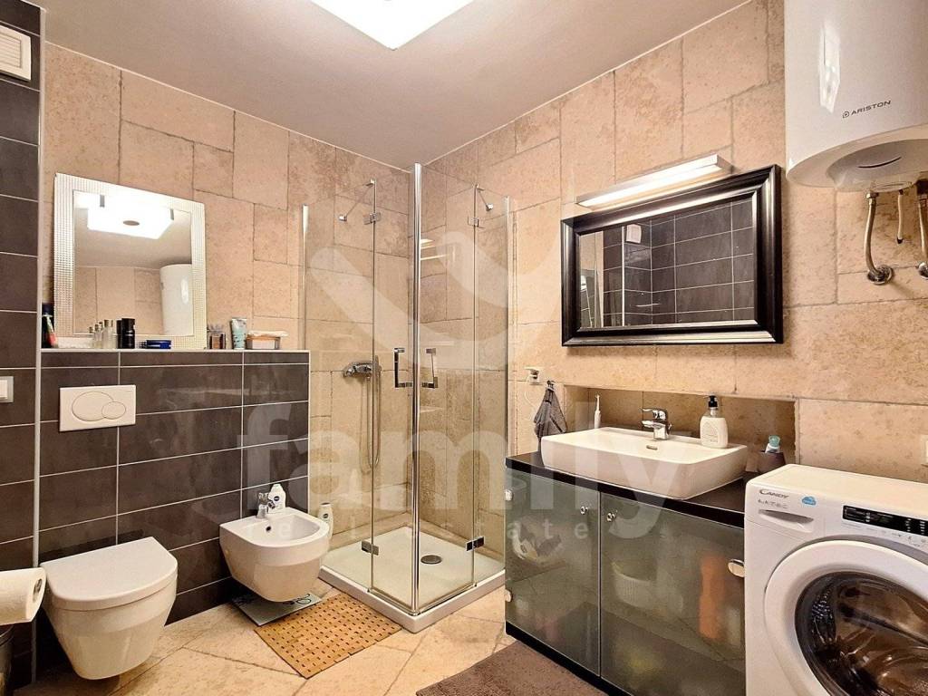 Upravo u centru Općine Fažana nalazi se ova poslovno-stambena kuća ukupne površine 150 m2. Kuća se sastoji od stambenog dijela koji se sastoji od ulaznog predprostora na prvome katu, dvije spavaće sobe, prostrane kupaonice, dok se na drugome katu nalazi osvijetljeni prostrani dnevni boravak sa kuhinjom i blagovaonom, kupaonica i još jedna manja prostorija na posljednjoj etaži u potkrovlju koja može poslužiti u vidu spremišta ili pak za još jednu spavaću prostoriju koje je veoma osvijetljena i posjeduje dva velika krovna prozora sa roletama na elektro podizaće. Kuća je visoko kvalitetno renovirana i pomno se pratila njena renovacija do svakog detalja, prostorije su obložene debelim drvenim parketom, dok su ulazni predprostor i kupaonice obložene predivnim kanfanarskim kamenom te je u kupaonicama postavljeno i podno grijanje. Objekt je opremljen PVC stolarijom dvoslojnog stakla sa sedam plinskih komora, drvenim škurama izvana i kamenim klupčicama u cijelom objektu, grijanje i hlađenje cijelog objekta jeste putem tri jedinice klima uređaja i električnih radijatora u svakoj prostoriji. Postavljena su tri krovna prozora koja daju još više svijetlosti prostoru, a sa posljednje etaže se pruža pogled na more te postoji mogućnost otvaranja krovne terase u budućnosti što bi upotpunilo ugođaj u nekretnini. Kuća je na novo renovirana, novi krov sa izvanrednom toplinskom izolacijom, SEP fasada kao i četiri armirane betonske međukatne konstrukcije sa četiri nosiva stupa. U prizemlju nekretnine nalazi se poslovni prostor površine 50 m2 i u sezonskom je najmu što budućim vlasnicima jamči ili povrat sredstava ili mogućnost otvaranje svoje poslovne djelatnosti na izuzetno atraktivnoj i traženoj lokaciji. Poslovni prostor je također na novo renoviran te posjeduje kamin, jedinicu klima uređaja, ventilacijski sustav u cijeloj prostoriji kao i toalet.