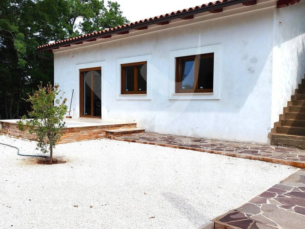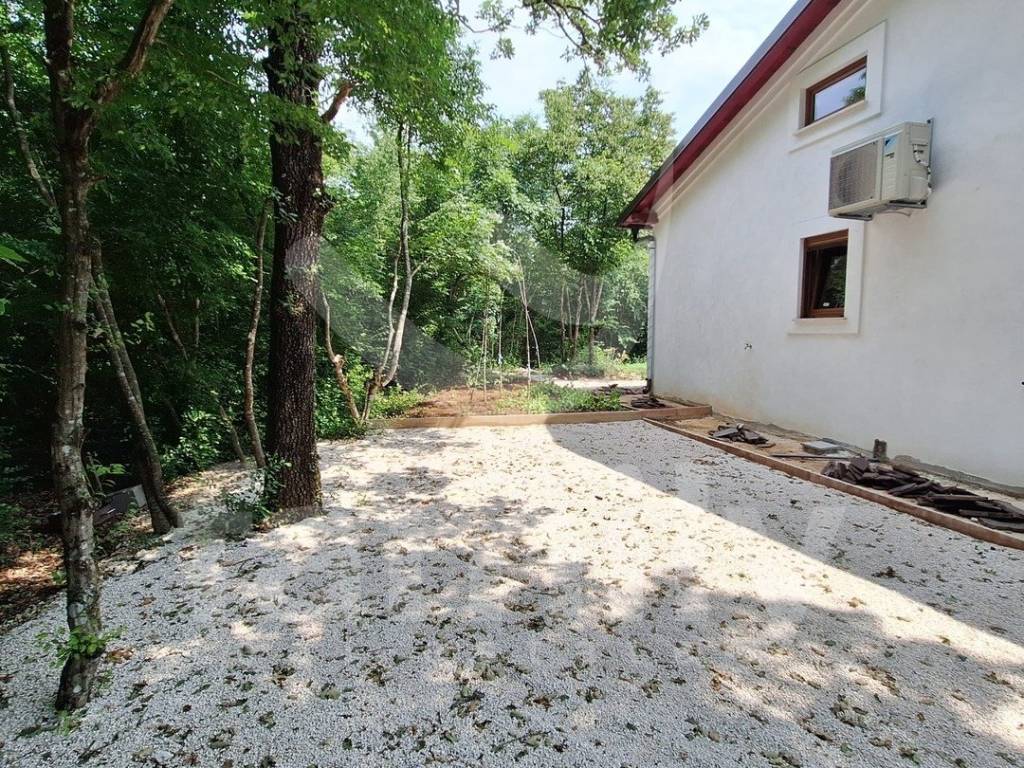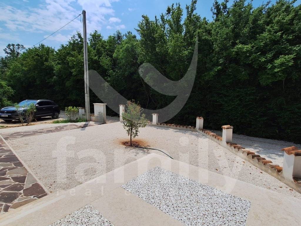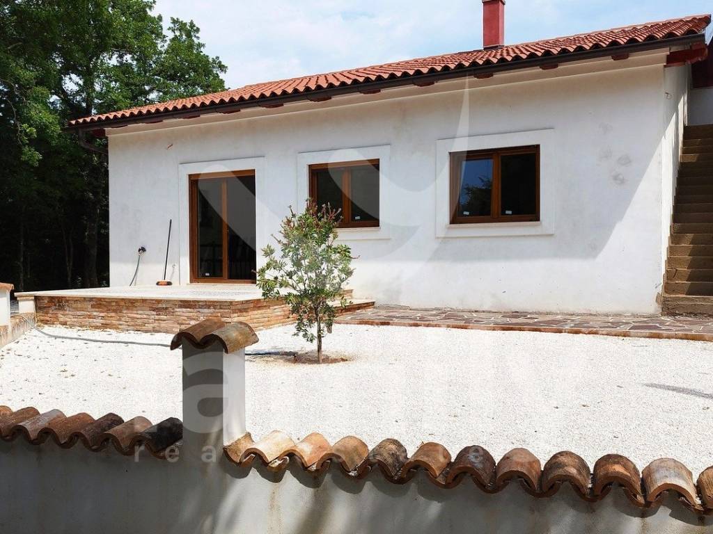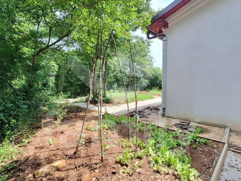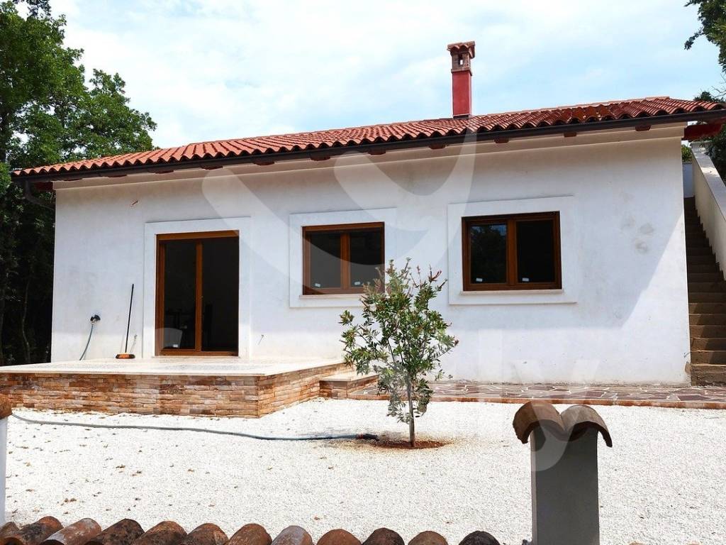 Upravo u jednom mirnom selu nedaleko od Barbana nalazi se ova prostrana, samostojeća, novosagrađena prizemnica površine 110 m2 na okućnici površine 500 m2. Kuća se sastoji od dnevnog boravka sa prostorom za ručavanje i kuhinjskog dijela, tri spavaće sobe i kupaonice. Vanjskim stepenicama dolazi se do prostranog potkrovlja koje može poslužiti kao spremište, vešernica ili već po želji budućeg vlasnika. Kuća je na novo sagrađena i postavljena je kvalitetna keramika, četiri jedinice klima uređaja, u svakoj prostoroji po jedna kao i četiri televizora, PVC stolarija boje zlatnog hrasta sa dvoslojnim staklom, roletama i komarnicima, dok se namještaj i opremanje nekretnine ostavlja budućem vlasniku. Okućnica je dovoljne površine za izgradnju bazena, a u okviru nje se mogu smjestiti 2 do 3 parking mjesta. Nalazi se na kraju ulice i okružena je prirodom i zelenilom što garantira mir i tišinu.