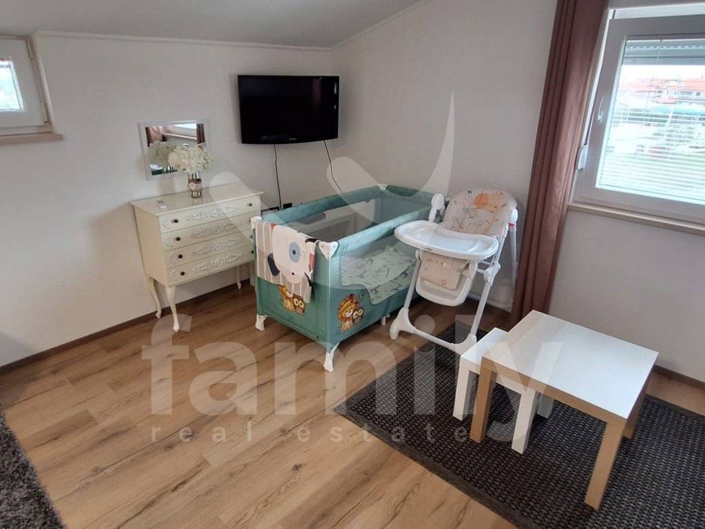 Na drugome katu se nalaze dva stana. Prvi stan je površine cca 78 m2 i dvoetažni je u potpunosti sređen i trenutno je u namjeni turističkog iznajmljivanja. Unutar njega smjestio se otvoreni prostor kojeg čini dnevni boravak, visokokvalitetna kuhinja, prostor za ručavanje sa kojeg se izlazi na terasu, a sa koje se pruža predivan pogled na Brijunsko otočje i more, kupaonica i spavaća soba. Stepenicama hrastovog drveta dolazi se do galerije u kojoj se nalazi još jedna spavaća soba i kupaonica. Duž cijele galerije je stajna visina. Sistem grijanja i hlađenja je putem tri jedinice klima uređaja (svaka spavaća soba sa svojom klimom i jedna jedinica se nalazi u dnevnom boravku). Tokom opremanja nekretnine pazilo se na svaki detalj te je luster u dnevnom boravku sa bluetooth zvučnikom i podešavanjem različitih boja svjetla, PVC stolarija dvoslojnog stakla sa 7 plinskih komora sa ALU roletama i dodatnom izolacijom.