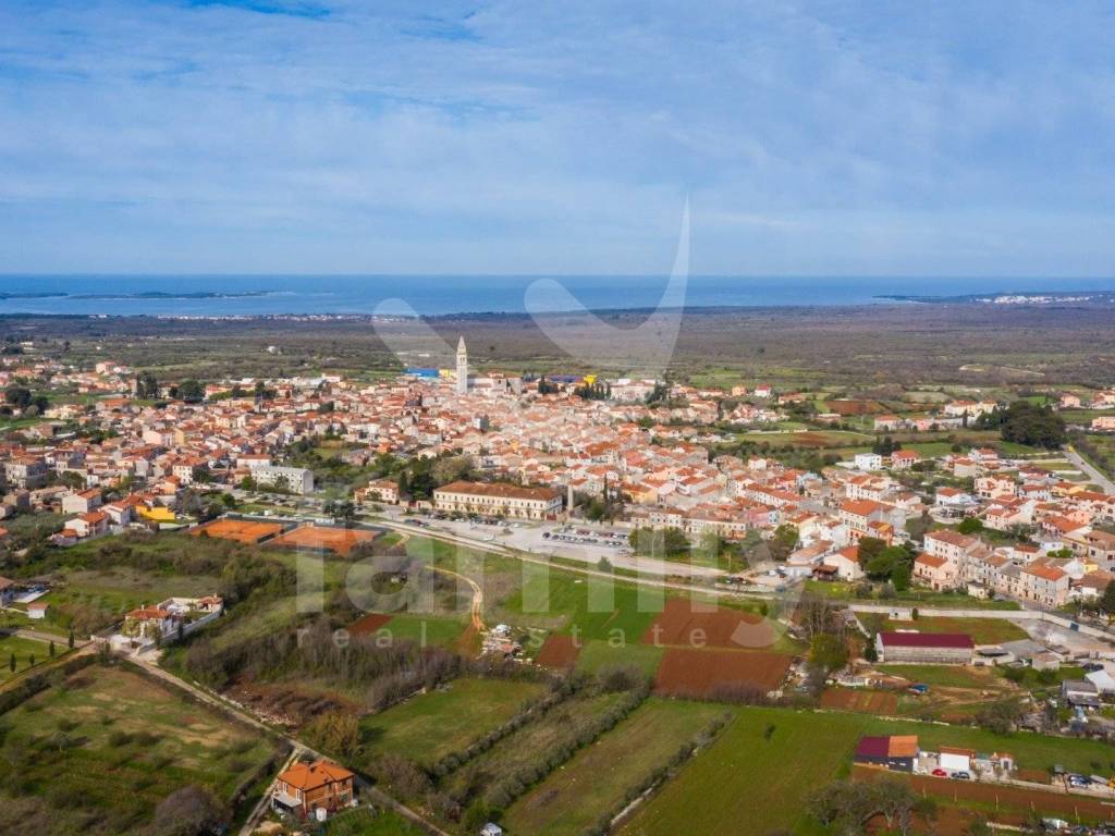 Upravo na području grada Vodnjana na veoma mirnoj i unikatnoj lokaciji nam se nalazi veoma atraktivno građevinsko-poljoprivredno zemljište površine 35 500 m2 sa pogledom na more, grad Pulu i Brijunsko otočje. Namjena prostora je propisana prostornim planom svih razina ugostiteljsko turističke namjene površine 20 000 m2, dok je ostatak zemljišta površine 15 500m2 poljoprivredne namjene. Na pozamašnoj površini omogućeno nam je graditi hotel, hotel sa tri depandanse, smještajne jedinice tipa vila ili pansion, što podrazumijeva izgradnju recepcije, ugostiteljskog objekta za prehranu, ugostiteljskog objekta za zabavu i sportsko rekreativne sadržaje ( bazen, igrališta, parkovi i slično). Trenutno navedena površina posjeduje 900 maslina, 22 godine starih, pomno održavanih i tretirane po eko standardima sa eko certifikatom, koje doprinose veliku količinu ulja na godišnjoj razini. Velika prednost ove nekretnine je mogućnost dodatnog otkupa veće površine zemljišta koje graniče sa zemljištem koje je predmet prodaje, također posjeduju veliki eko maslinik i stoljetnu šumu, koja nam daje ugođaj spoja sa prirodom i zelenilom sa poslovnim potencijalom, te budućem vlasniku omogućava proširenje poslovanja. Nekretnina posjeduje uredan pristupni put, urednu dokumentaciju, nalazi se na veoma mirnoj, a opet atraktivnoj lokaciji, te već sada bez dodatnih ulaganja omogućava budućem vlasniku određeni povrat investicije u vidu proizvodnje i prodaje vlastitog eko maslinovog ulja. Bitna stavka je i veliki koeficijent izgrađenosti površine čak 4 000 m2 i koeficijent iskorištenosti od 6 000 m2, što nam daje dodatne prednosti prilikom planiranja investiranja, kao i namjena prostora propisana prostornim planovima svih razina ugostiteljsko turističke namjene što omogućava budućem vlasniku brzu realizaciju građevinske dozvole i mogućnost početka gradnje nakon izrade glavnog projekta.