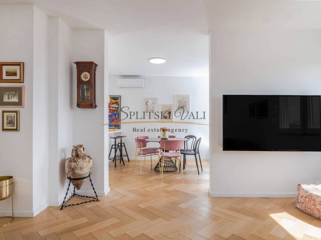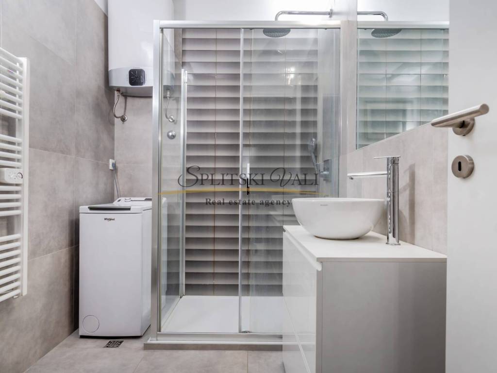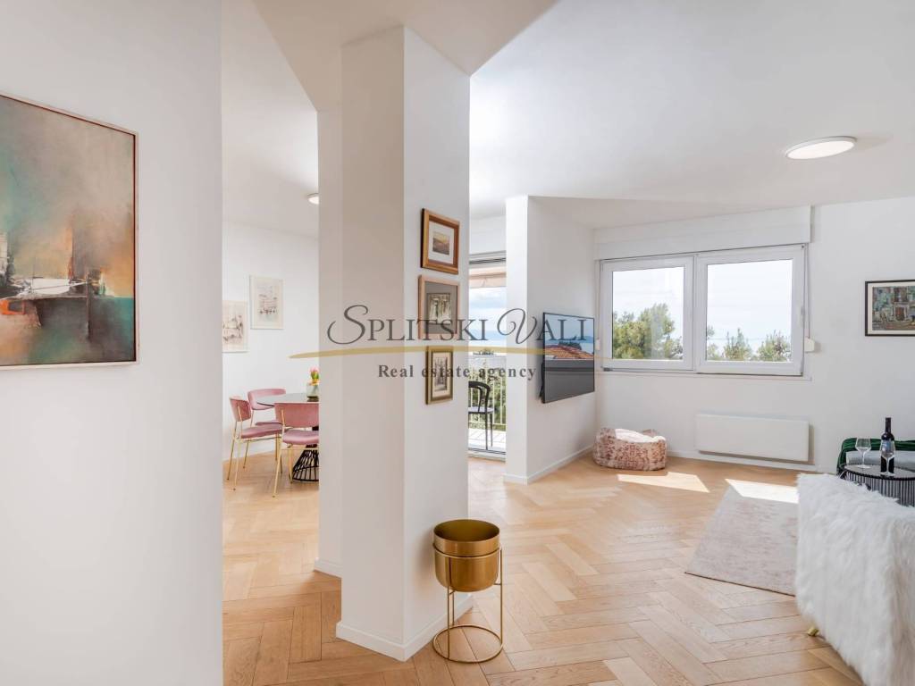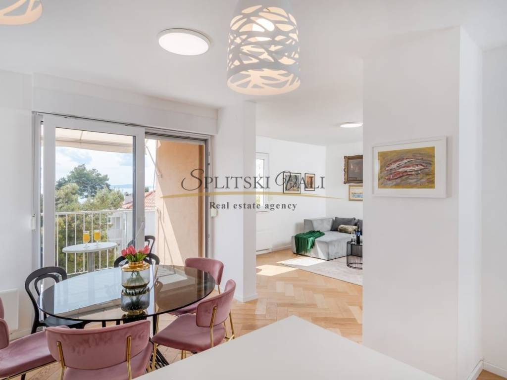 Posredujemo u najmu luksuznog dvosobnog stana na odličnoj lokaciji u Splitu - predio Meje. Osim dvije spavaće sobe, stan se sastoji od kuhinje s blagovaonicom, dnevne sobe, kupatila, hodnika i balkona s prekrasnim panoramskim pogledom na more. Stan je južne orijentacije te je iznimno svijetao i osunčan.