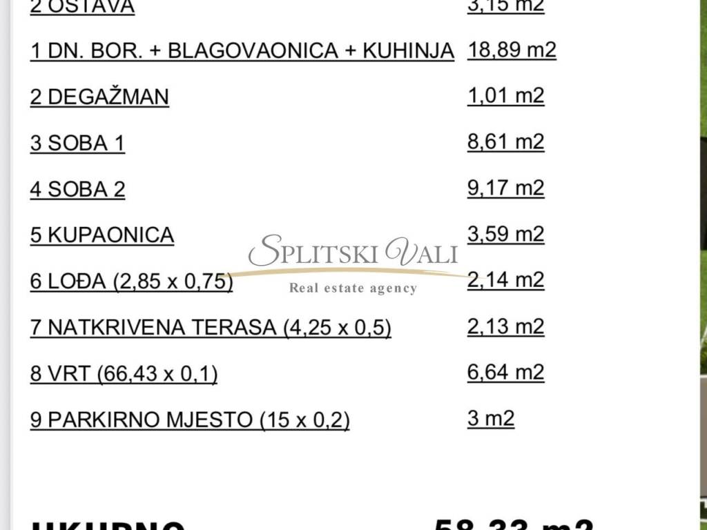 Dvosobni stan 13295 m², Kaštela