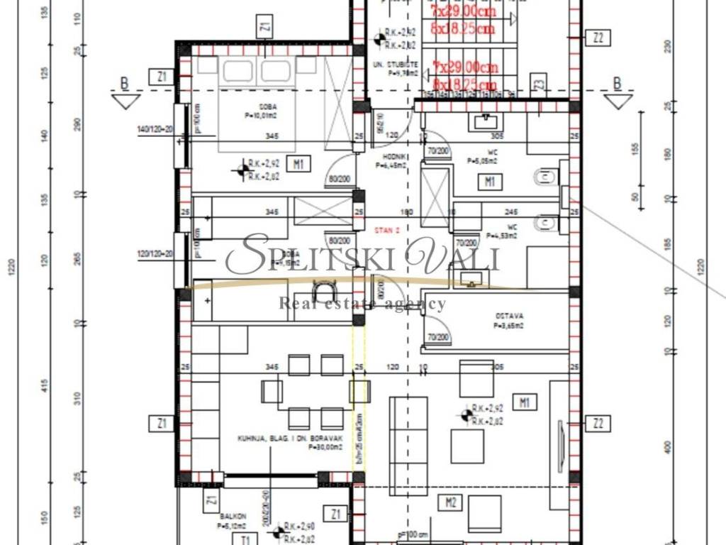 Ukupne stambene površine 74m2 i sastoji se od dvije spavaće sobe, dva kupatila, dnevnog boravka, kuhinje, blgovaonice, hodnika i balkona.