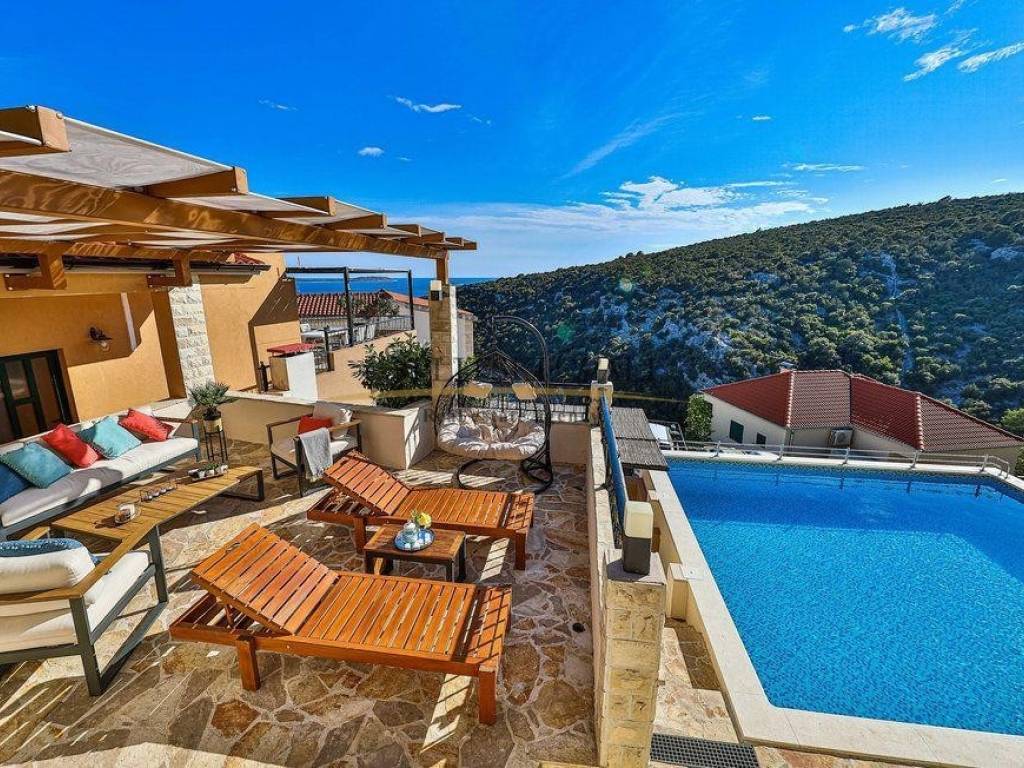 Na prodaju je luksuzna kuća u Vinišću, idealna za turističke svrhe ili obiteljski odmor, smještena u mirnoj uvali.