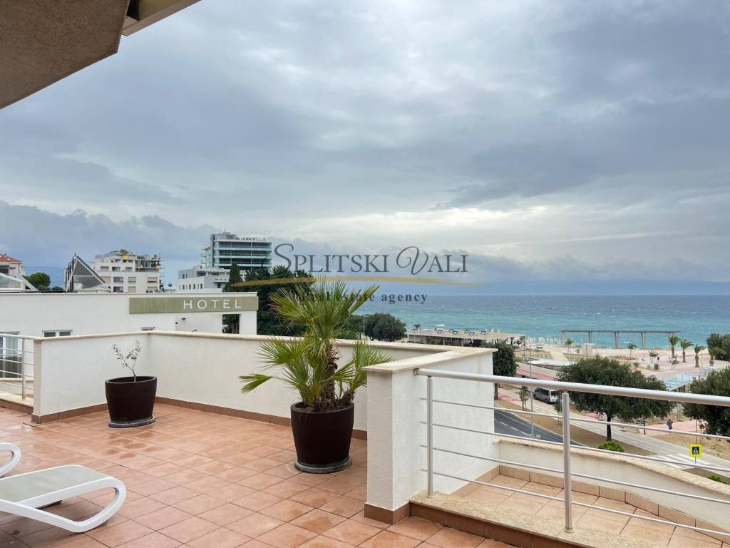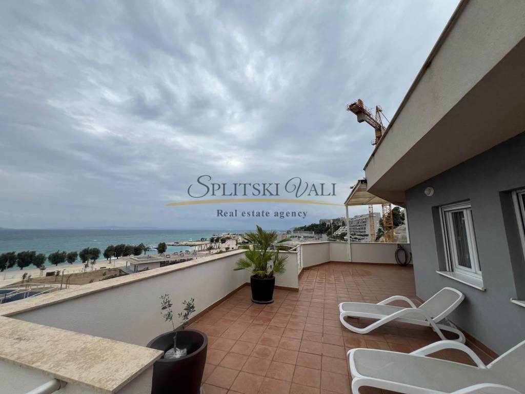 Posredujemo u najmu prekrasnog dvosobnog penthousea na Žnjanu. Stan se nalazi na odličnoj lokaciji - prvi red do mora! Stan se prostire na 80,09 m2 stambene površine te mu pripada prostrana terasa površine 123 m2 s otvorenim pogledom na more i otoke.