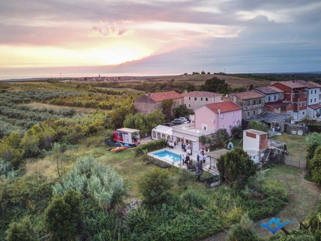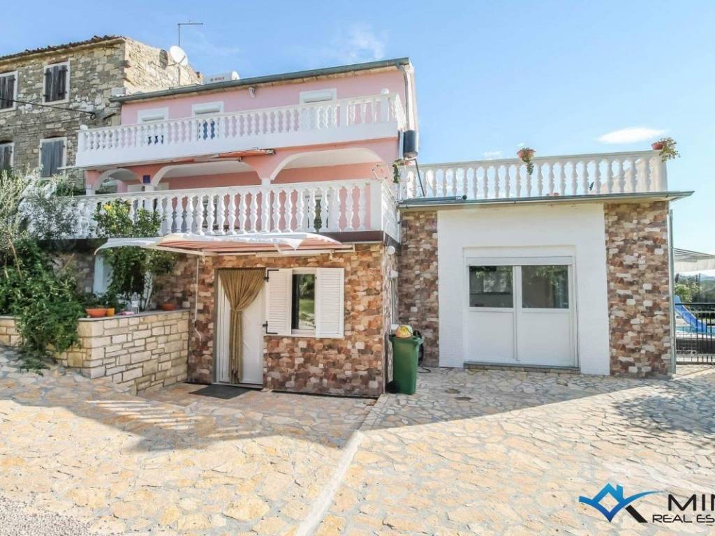 Prodaje se lijepa kuća na mirnoj lokaciji u okolici Novigrada. Kuća je udaljena 5 km od mora i 1800 m od centra Brtonigle. Kuća je podijeljena na 3 etaže te ima 220 m2. U prizemlju se nalazi prostorija s kuhinjom i open space prostorom s izlazom na lijepo uređeni vrt od 500 m2 i bazen. Na 1. katu nalazi se stan koji se sastoji od ulaznog hodnika, wc-a, kupatila, kuhinje s blagovaonicom te dnevnog boravka. Na 2. katu nalaze se 3 spavaće sobe i kupatilo. Kuća ima 2 velike terase s koje se pruža lijep pogled na more i prirodu. Kuća se može koristiti u stambene ili turističke svrhe. Kuća se iznajmljuje u turističke svrhe te ima jako dobru popunjenost u predsezoni, sezoni i postsezoni.