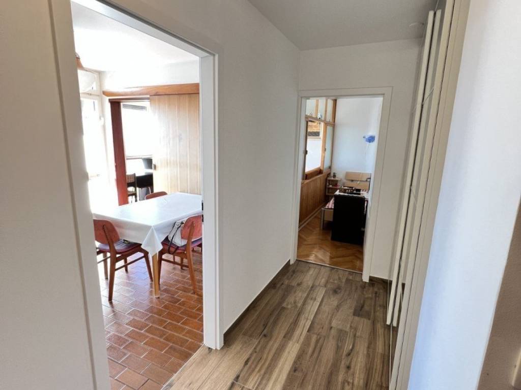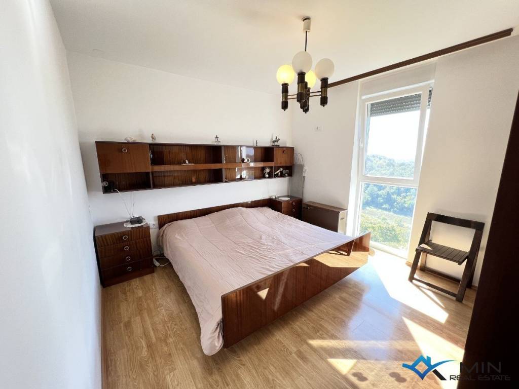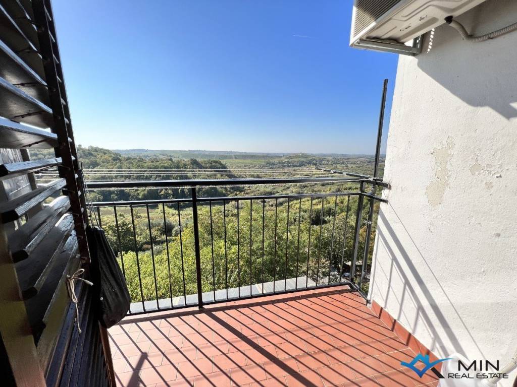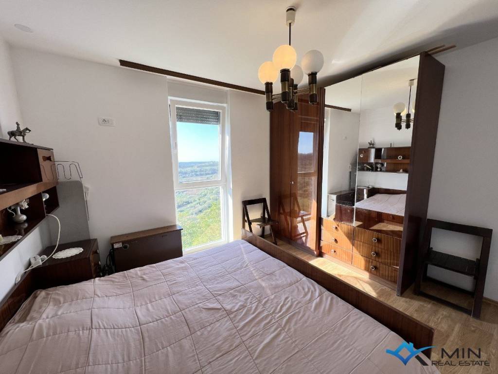 Prodaje se stan 2. katu zgrade u Bujama. Stan se nalazi u blizini svih sadržaja te je udaljen 15 km od mora i lijepo uređene plaže. Stan ima 56 m2 te se sastoji od ulaznog hodnika, spremišta, kupatila, 2 spavaće sobe, kuhinje s blagovaonicom te dnevnog boravka s izlazom na terasu. Iz dnevnog boravka i terase pruža se lijep pogled na more i okolno vinograde. U stanu je nedavno renovirani hodnik, kupatilo te je cijela unutarnja stolarija nova. Stanu pripada spremište u podrumu zgrade. Stan je moguće koristiti u stambene ili turističke svrhe.