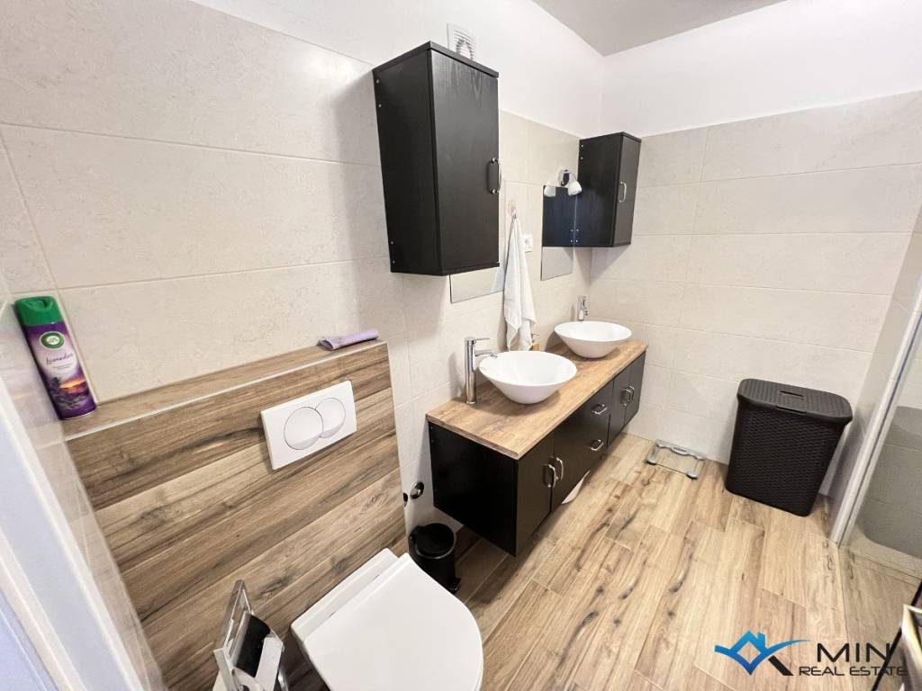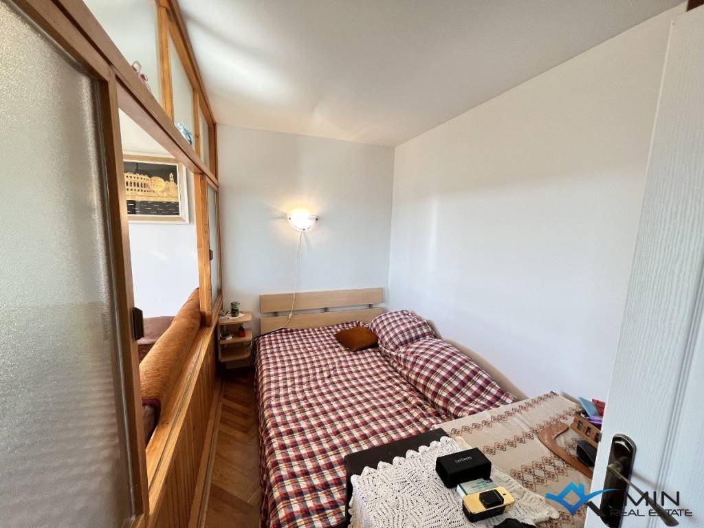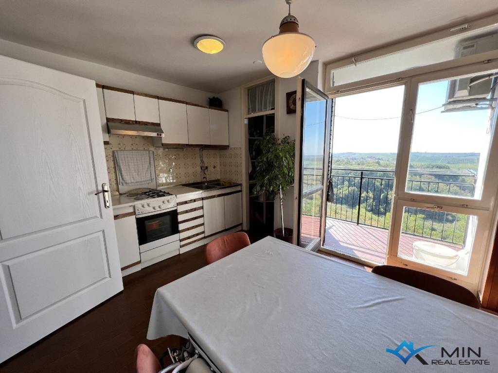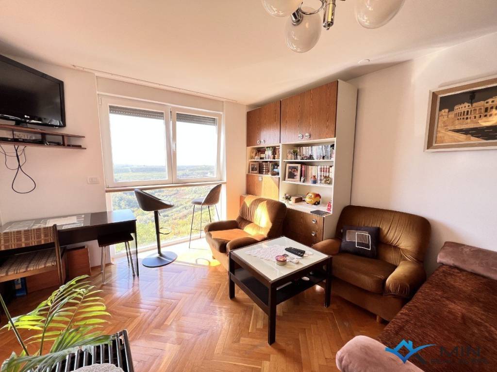 Prodaje se stan 2. katu zgrade u Bujama. Stan se nalazi u blizini svih sadržaja te je udaljen 15 km od mora i lijepo uređene plaže. Stan ima 56 m2 te se sastoji od ulaznog hodnika, spremišta, kupatila, 2 spavaće sobe, kuhinje s blagovaonicom te dnevnog boravka s izlazom na terasu. Iz dnevnog boravka i terase pruža se lijep pogled na more i okolno vinograde. U stanu je nedavno renovirani hodnik, kupatilo te je cijela unutarnja stolarija nova. Stanu pripada spremište u podrumu zgrade. Stan je moguće koristiti u stambene ili turističke svrhe.
