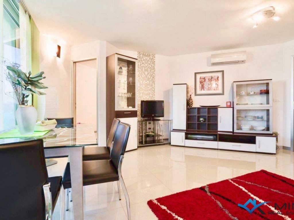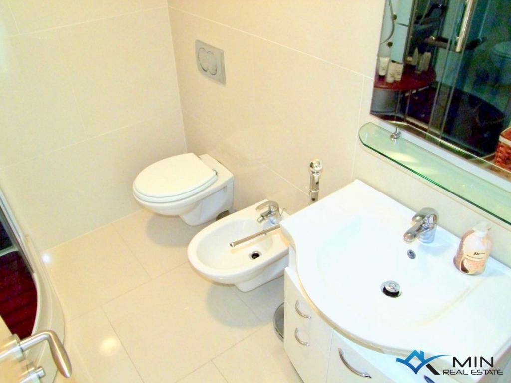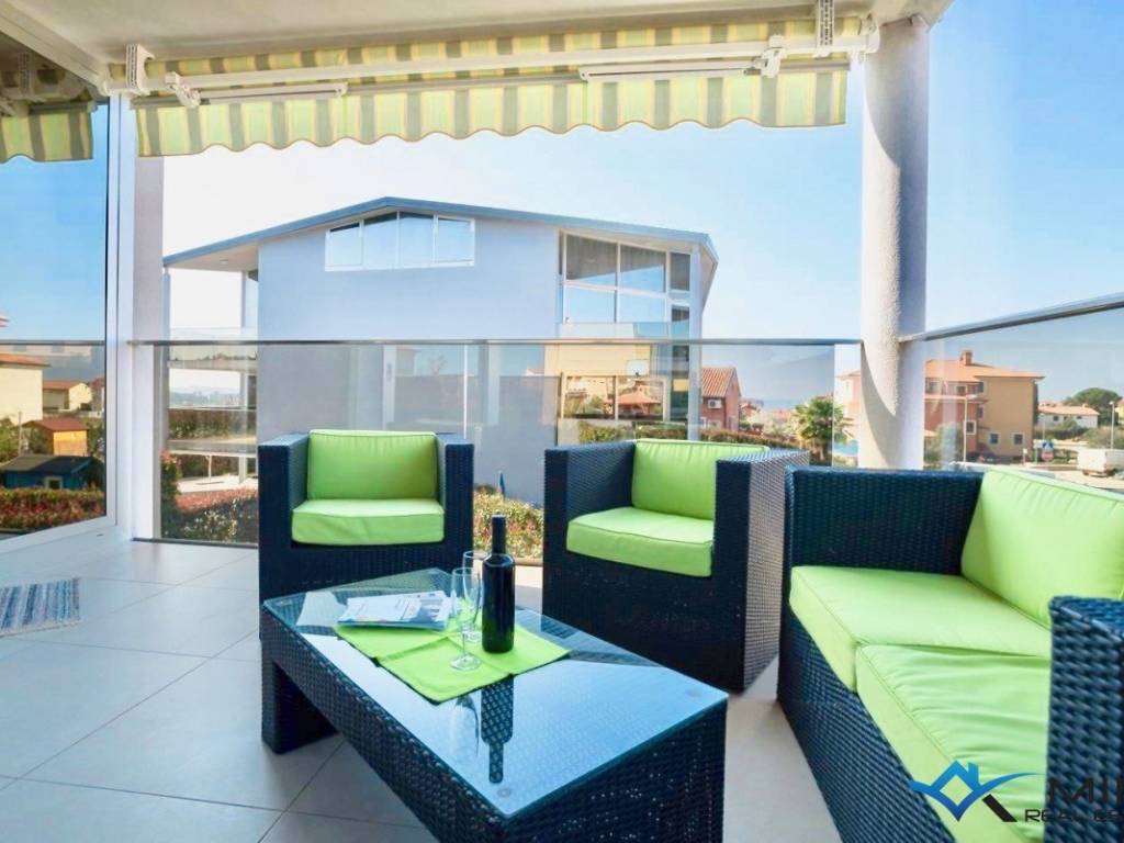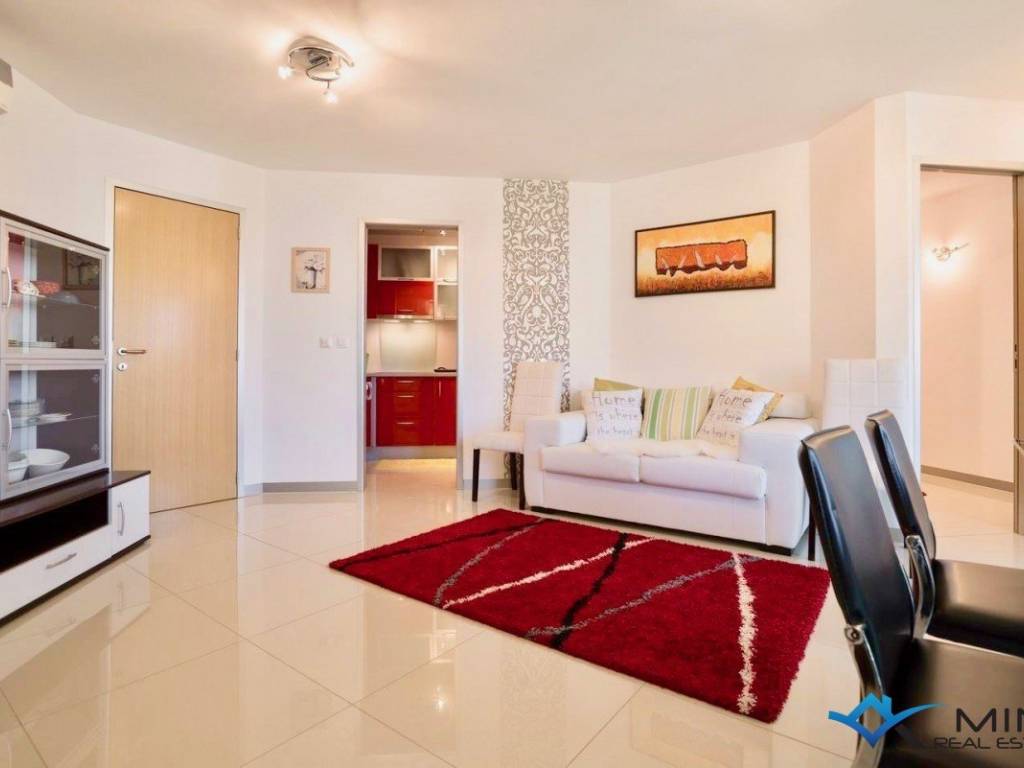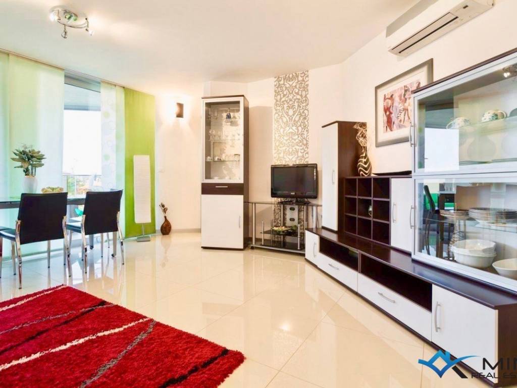 Prodaje se stan udaljen 1100 m od centra grada te 900 m od mora i lijepo uređene plaže. Stan se nalazi na mirnoj lokaciji te je smješten na 1. katu zgrade s liftom. Stan ima 61, 75 m2 + 8,46 m2 parking u garaži te spremište. Stan se sastoji od ulaznog hodnika, kupatila, 2 spavaće sobe, kuhinje, blagovaonice te dnevnog boravka s izlazom na natkrivenu terasu s lijepim pogledom na more. Grijanje / hlađenje u stanu je putem podnog grijanja i klima uređaja. Stan je moguće koristiti u stambene ili turističke svrhe.
