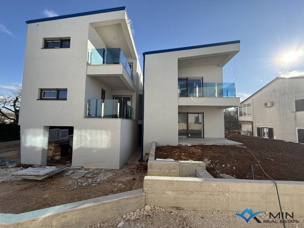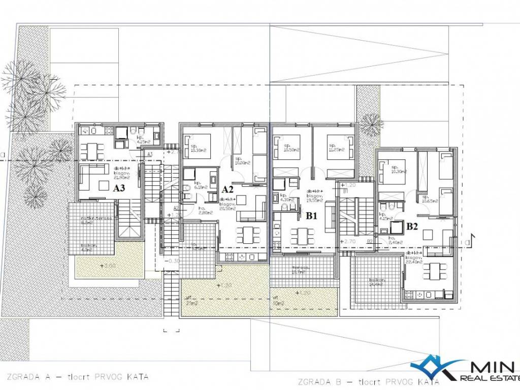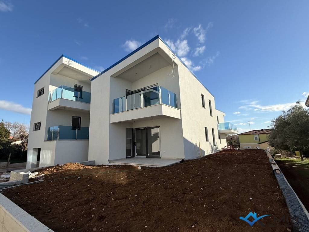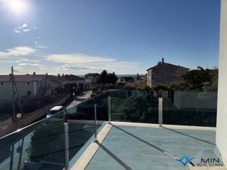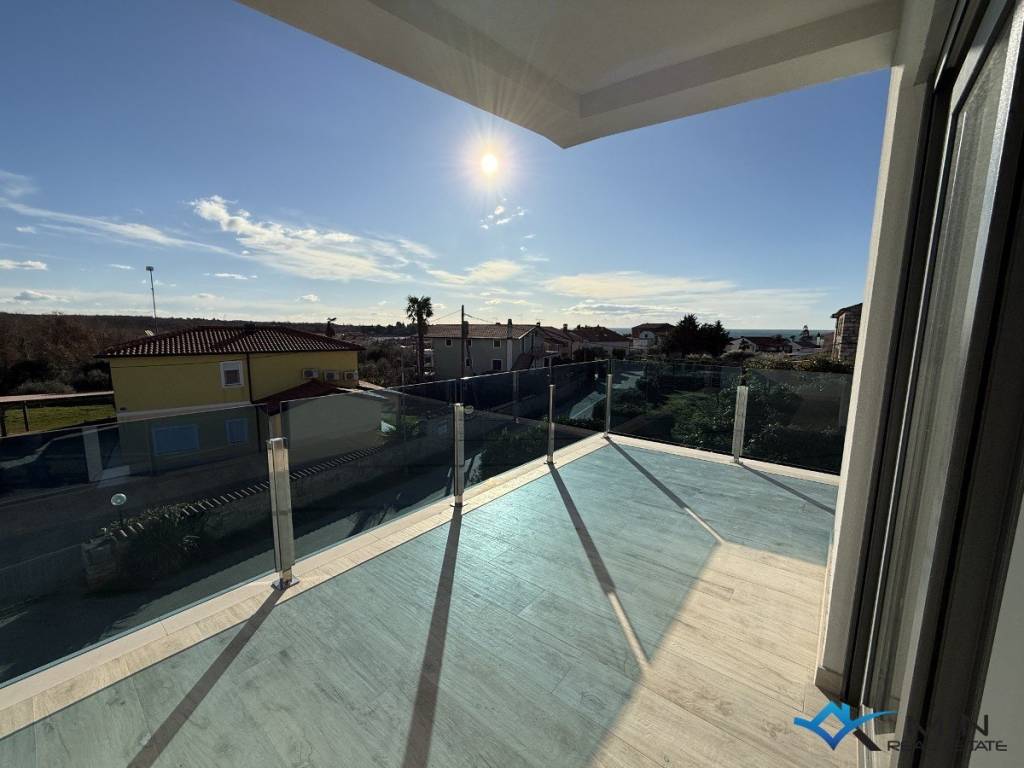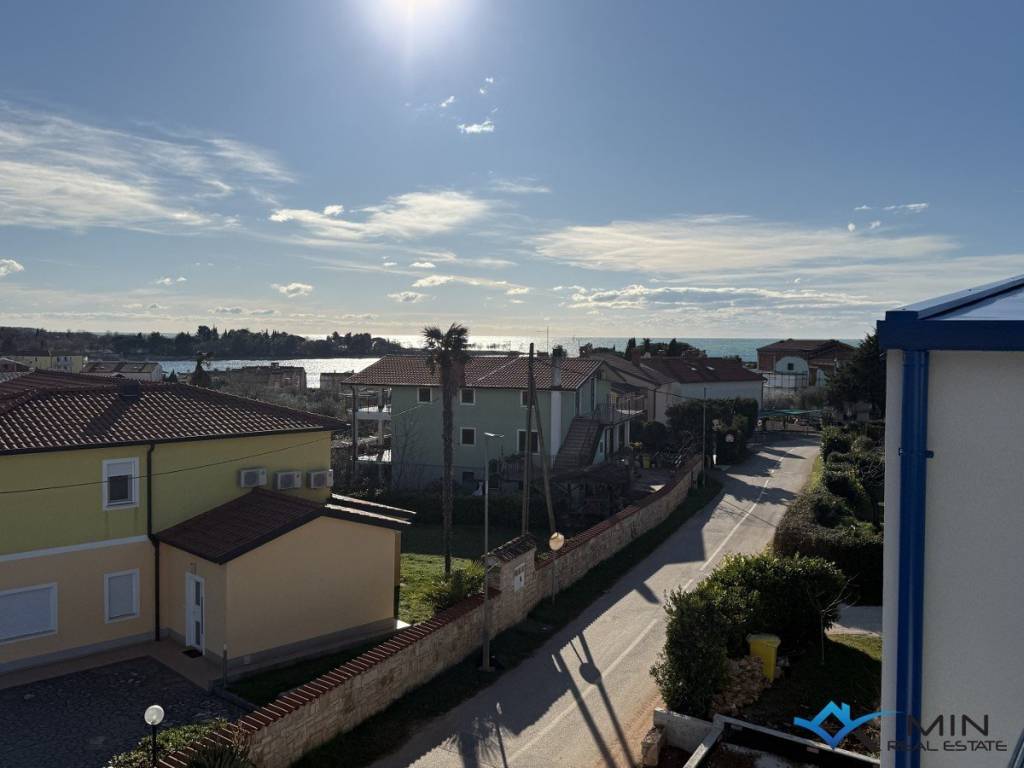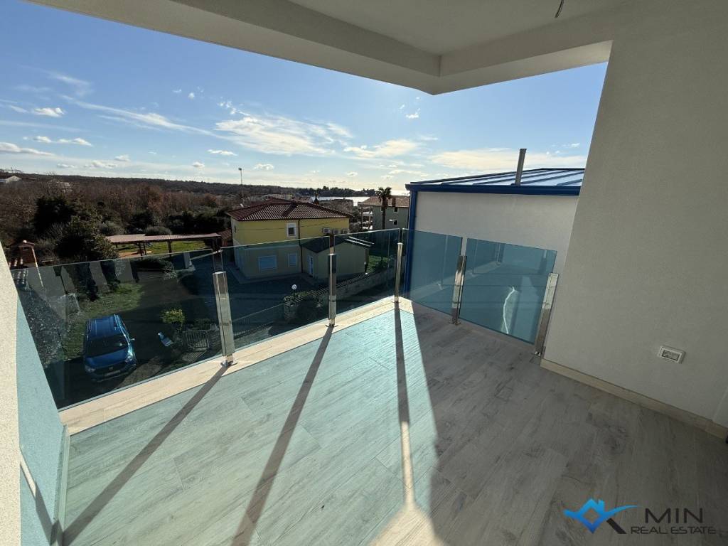 Prodaje se stan u izgradnji na mirnoj lokaciji u Lovrečici. Stan je smješten na 1. katu zgrade od ukupno 4 stan. Stan ima zatvorenog prostora od 49, 90 m2 i sastoji se od hodnika, kupatila, 2 spavaće sobe, open space prostora u kojem se nalaze kuhinja s blagovaonicom i dnevni boravak. Stan ima natkrivenu terasu od 14, 40 m2, spremište u prizemlju zgrade od 7, 55 m2 te 2 parkirna mjesta od kojih je 1 parkirno mjesto natkriveno. Nakon obračuna po određeno koeficijntu stan B2 ima 72 m2. Stan je moguće koristiti u stambene ili turističke svrhe. Udaljenost od centra Umaga je 5 km, a Novigrad je udaljen 7 km.