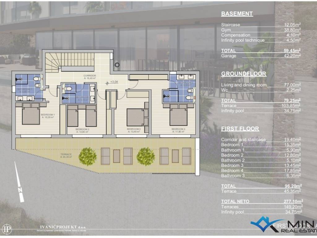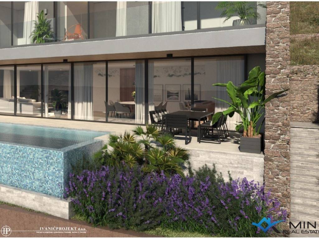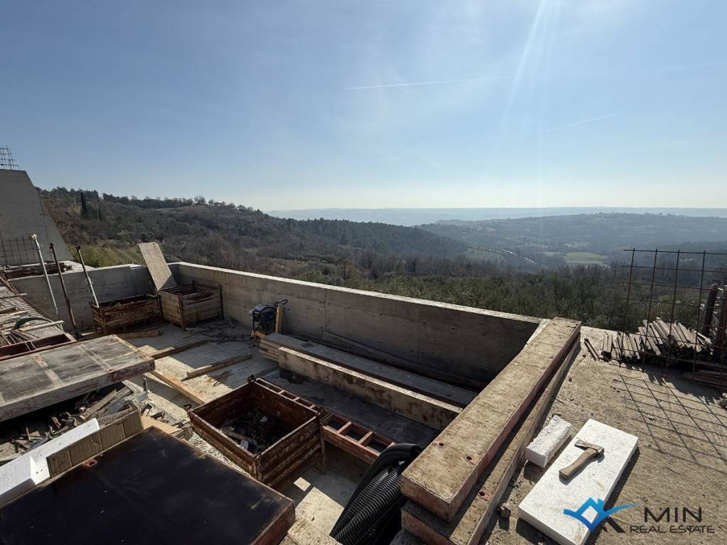 Prodaje se vila u izgradnji na mirnoj lokaciji u okolici Buja, u mjestu Krasica. Vila ima neto kvadraturu od 277 m2 + terase od 149 m2 + infinity bazen od 34 m2 te je podijeljena na 3 etaže ( podrum, prizemlje i 1. kat ). U podrumu je smještena garaža za aute, teretana i spremište od bazena. Prizemlje se sastoji od hodnika, wc-a, te open space prostora u kojem je smještena kuhinja s blagovaonicom i dnevni boravak s izlazom na terasu i infinity bazen od 34 m2 s prekrasnim pogledom na more. Na 1. katu se nalaze 4 spavaće sobe i 3 kupatila. Postoji mogućnost odabira opcije vile sa 3 spavaće sobe i da se villa može pripremiti do useljenja sa svim namještajem, opremom, rasvjetom i dekoracijama kao na slikama za 1.210.000 EUR. Grijanje i hlađenje je putem klima uređaja, kamina i podnog grijanja. Vilu je moguće koristiti u stambene svrhe ili turističke svrhe.