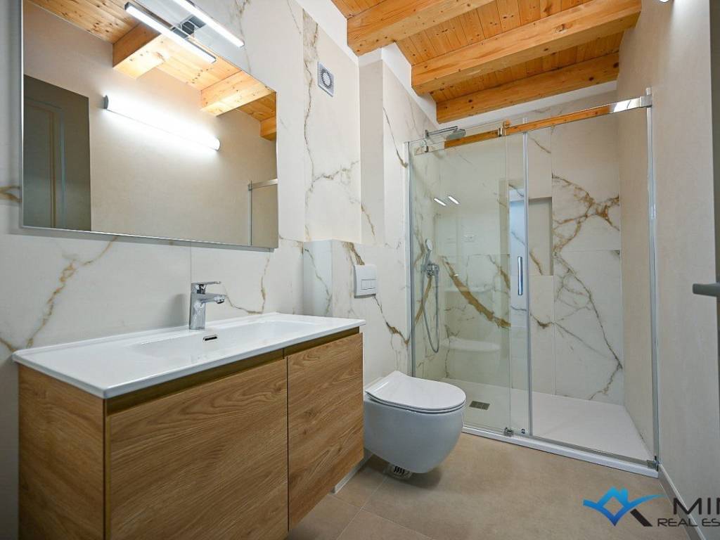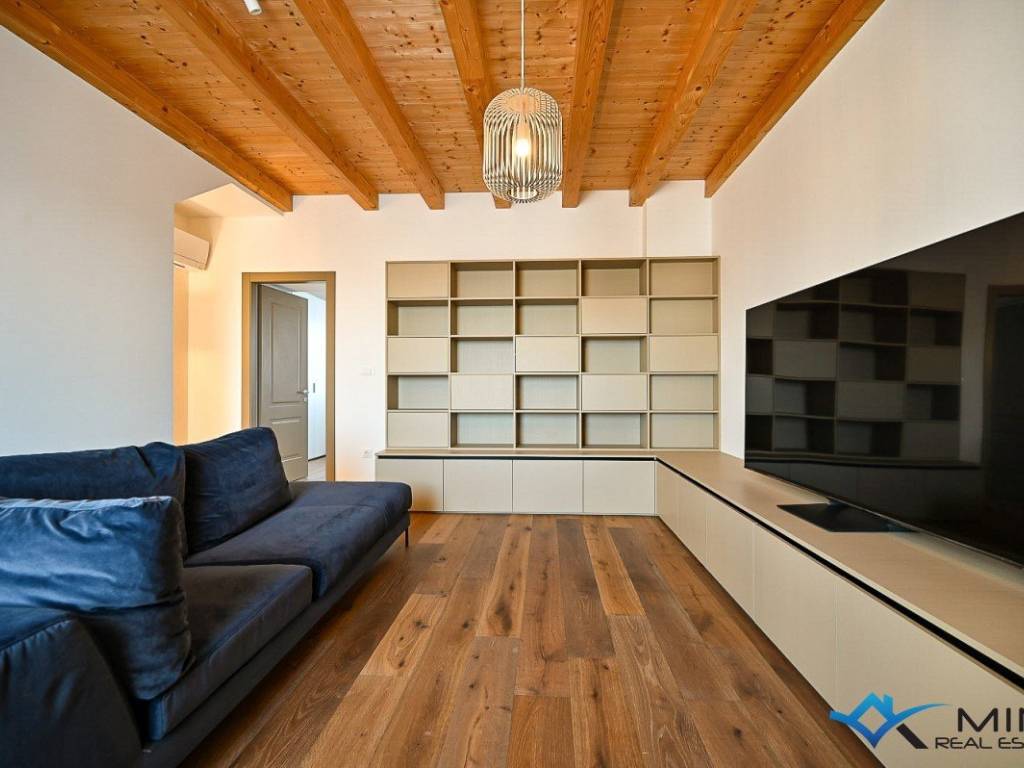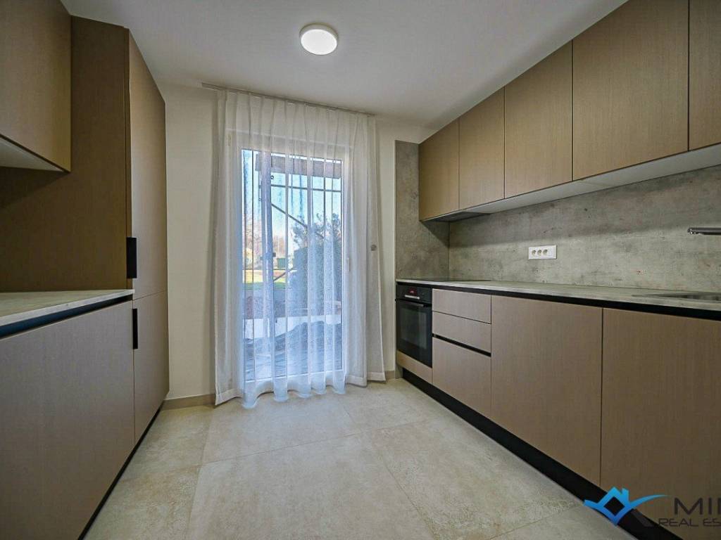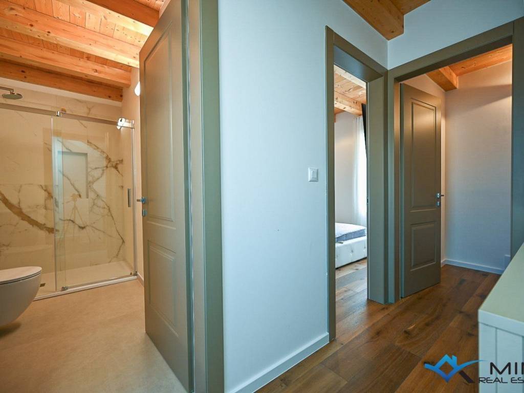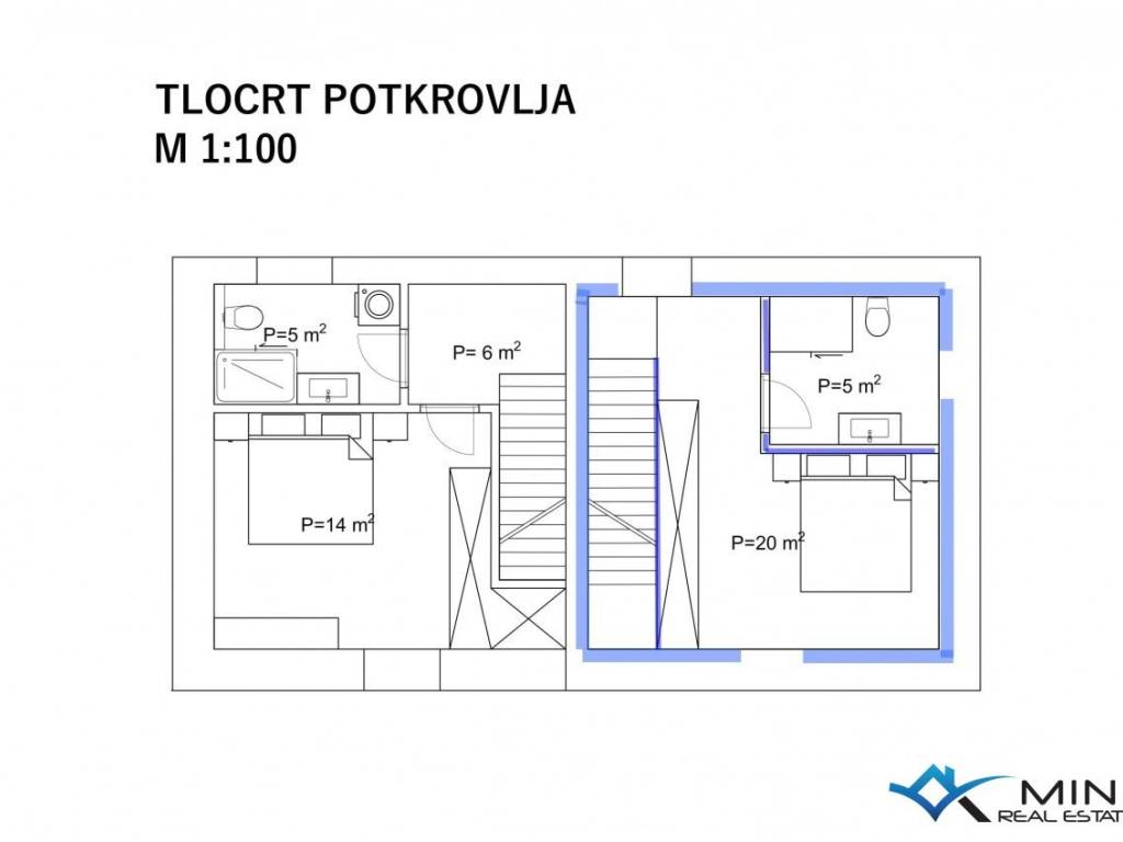 Prodaje se kuća u nizu na mirnoj lokaciji udaljena 3 km od mora i lijepo uređene plaže. Kuća ima 135 m2 i podijeljena je na 4 etaže. U prizemlju se sastoji od blagovaonice, kupatila i kuhinje s izlazom na vrt. Na 1. katu nalazi se dnevni boravak i komforna spavaća soba od 15 m2. Na 2. katu smještena je spavaća soba i kupatilo, dok se u potkrovlju nalazi 3. spavaća soba i kupatilo. Kuća je kompletno obnovljena te je opremljena talijanskim namještajem te se takva i prodaje.