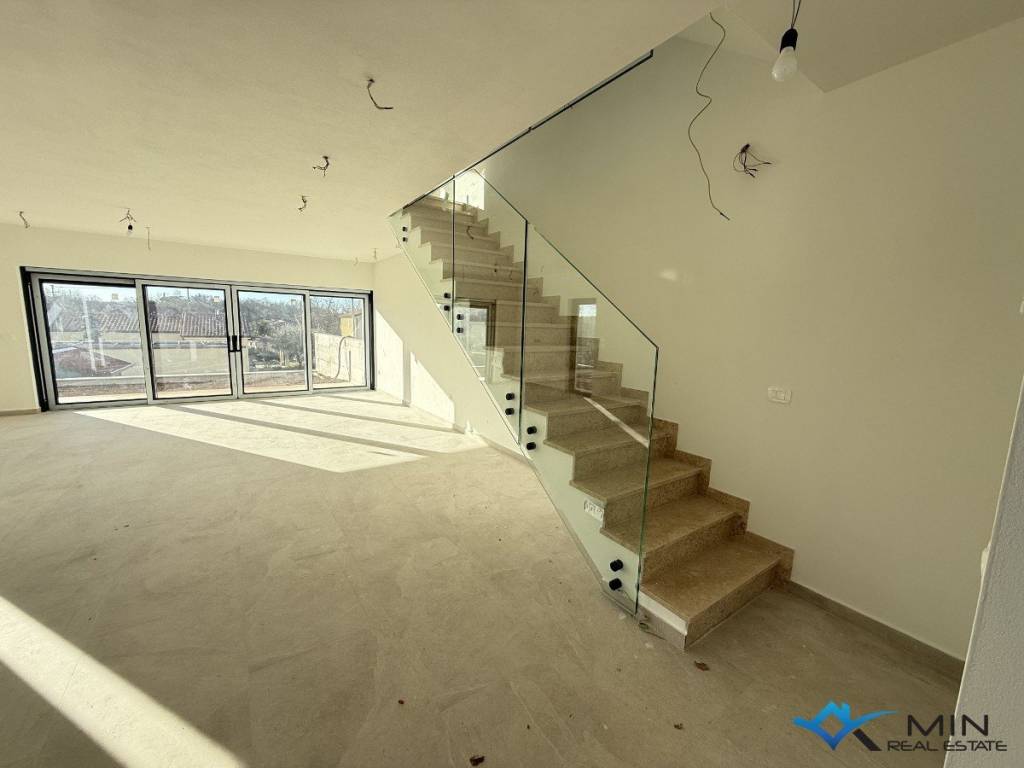Prilika za kupnju moderne kuće smještene samo 300 metara od mora, u neposrednoj blizini Novigrada. Ova elegantna kuća nudi sofisticirani dizajn i udobnost, savršena za obitelj ili kao vikendica. Prizemlje se sastoji od ulaznog hodnika, WC-a, open space prostora (veliki otvoreni prostor koji uključuje kuhinju, blagovaonicu i dnevni boravak), natkrivene terase (izlaz iz dnevnog boravka vodi na natkrivenu terasu koja pruža savršen prostor za opuštanje) i vrt s pripremljenim instalacijama za ljetnu kuhinju. Na 1. katu su tri spavaće sobe ( glavna spavaća soba ima vlastitu kupaonicu i terasu, dok druge dvije spavaće sobe dijele jednu kupaonicu). Na zadnjoj etaži je terasa s koje se pruža fantastičan pogled na more. Na gornjoj terasi su pripremljene instalacije za struju vodu i odvodnju. Kuća ima u vlasništvu dva parkirna mjesta, vrt veličine cca 220 m2. Udaljenosti: Prva uređena plaža je cca 500 m udaljena, a trgovina, bar ili restoran su udaljeni svega 200-250 m. Kuća se nalazi na mirnoj lokaciji, okružena novim modernim vilama, pružajući savršenu ravnotežu između privatnosti i lakoće pristupa lokalnim sadržajima. Ova nekretnina predstavlja izvanrednu priliku za one koji traže luksuzni život u blizini mora uz sve prednosti moderne arhitekture i udobnosti. Ne propustite ovu priliku kontaktirajte nas za dodatne informacije.