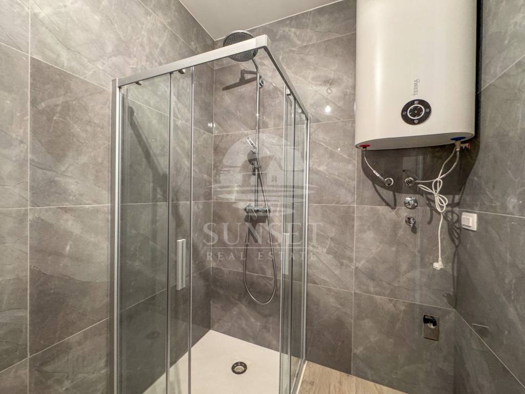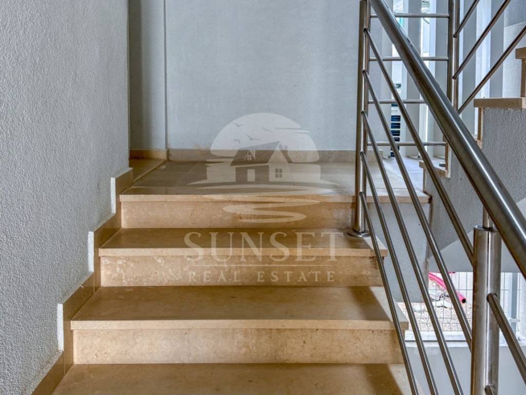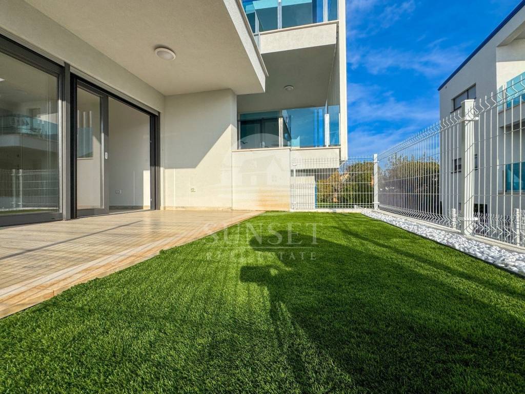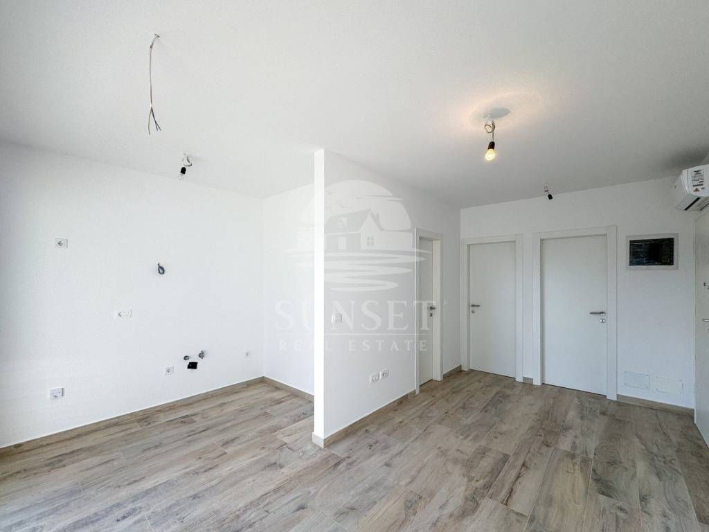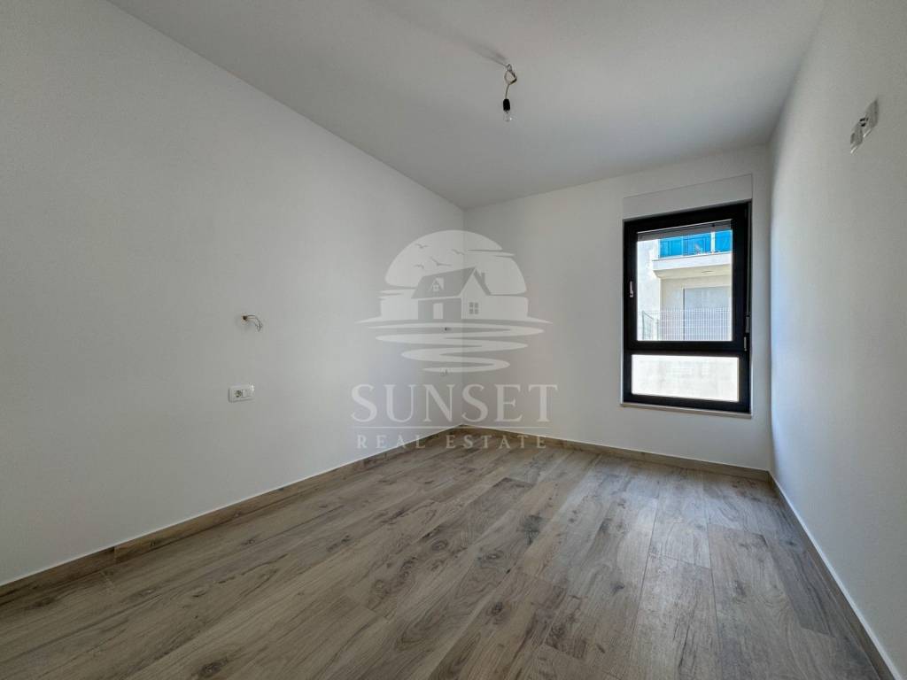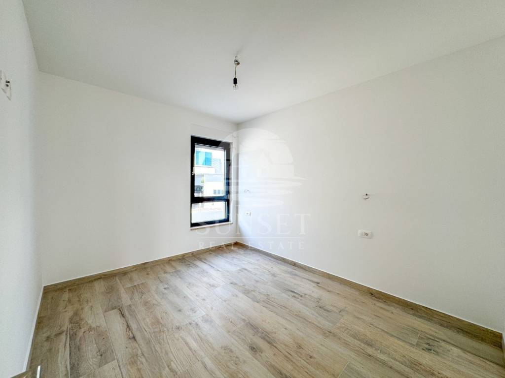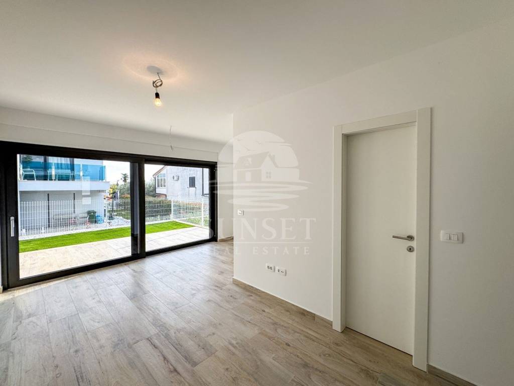 Apartman se nalazi na prvom katu suvremene zgrade s četiri stambene jedinice i dio je projekta od šest zgrada. Površina stana iznosi 45,60 m i uključuje ulazni hodnik, kuhinju s blagovaonicom, dnevni boravak s izlazom na natkrivenu terasu od 10,70 m sa koje imate izlaz na svoj privatni mali vrt, dvije spavaće sobe i kupaonicu. Uz apartman dolazi jedno natkriveno parkirno mjesto i ostava.