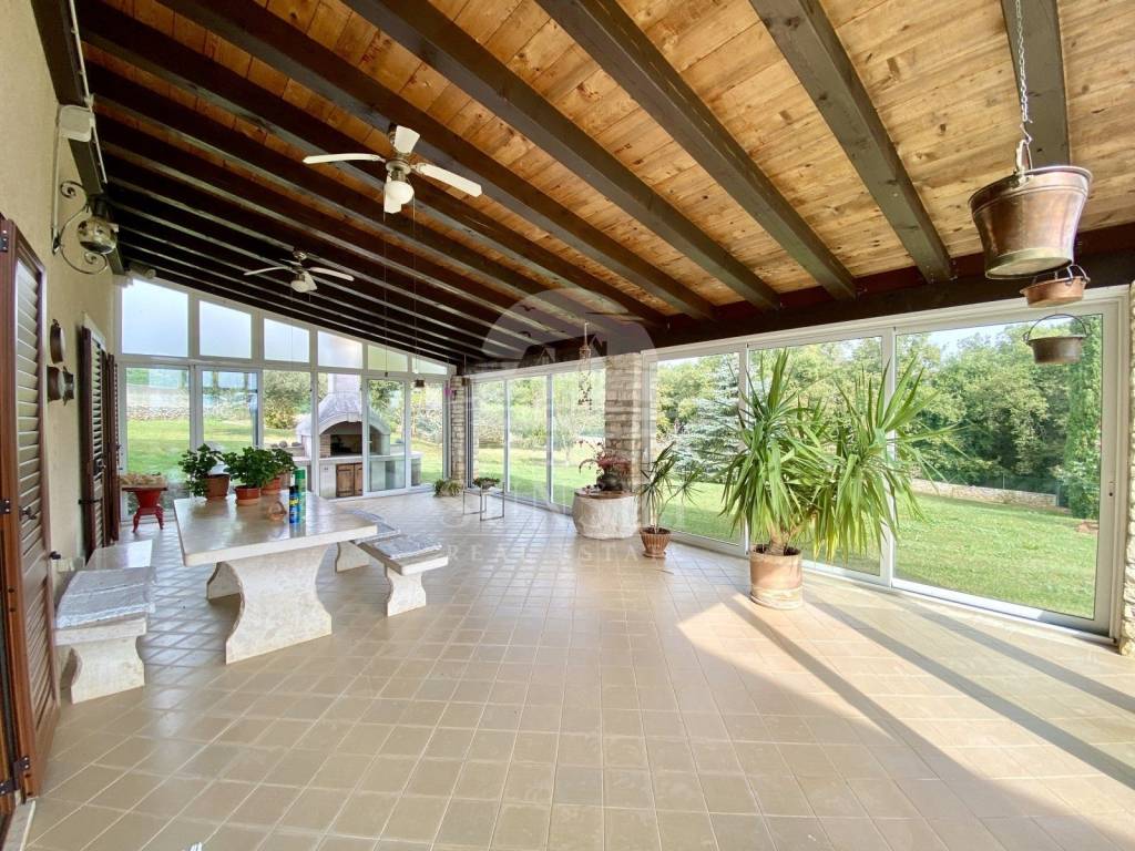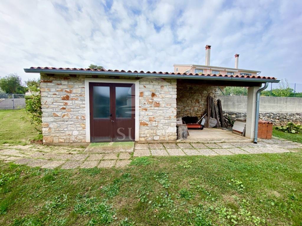 Kuća je opremljena termo fasadom, centralnim grijanjem na plin, te klima uređajima. Podovi su od punog egzotičnog drva, a kuhinja i kupaonice obložene su keramikom. Na parceli je smješten i maslinik, dok je zemljište u cijelosti ograđeno. Tu su još i dodatno spremište te garaža (46 m2).