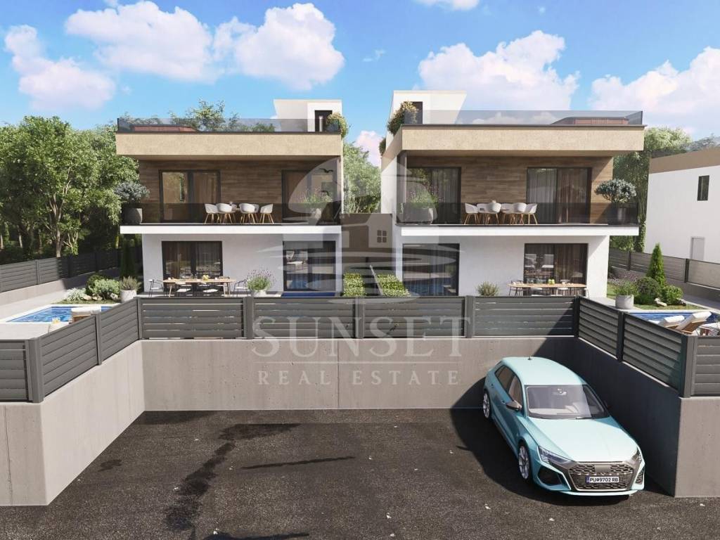 Na prodaju je moderno uređena dvojna kuća površine 160 m, smještena u mirnom i slikovitom okruženju, idealna za život, odmor ili investiciju. Prostire se na dvije etaže s pažljivo osmišljenim rasporedom prostorija.