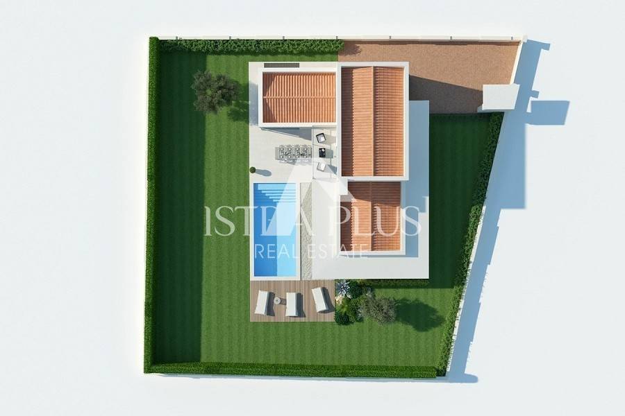 Kuća moderne arhitekture površine 253 m2 na zemljištu od 825 m2 s bazenom .