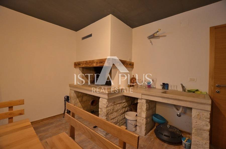 SUTEREN : Velika konoba s zidanim kaminom , kupaona, praonica te prostorija za saunu i rekreaciju .