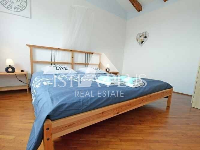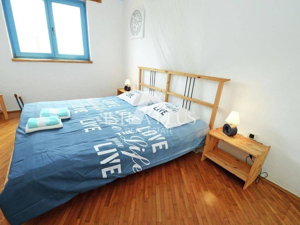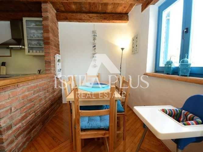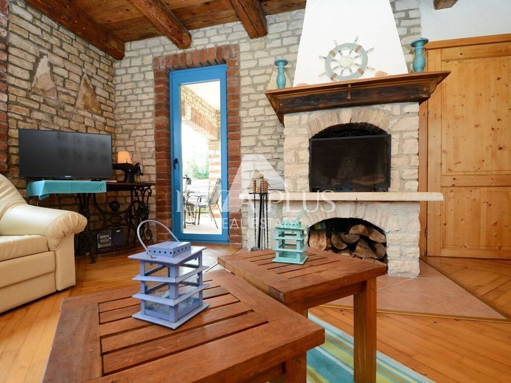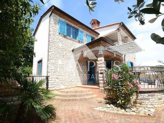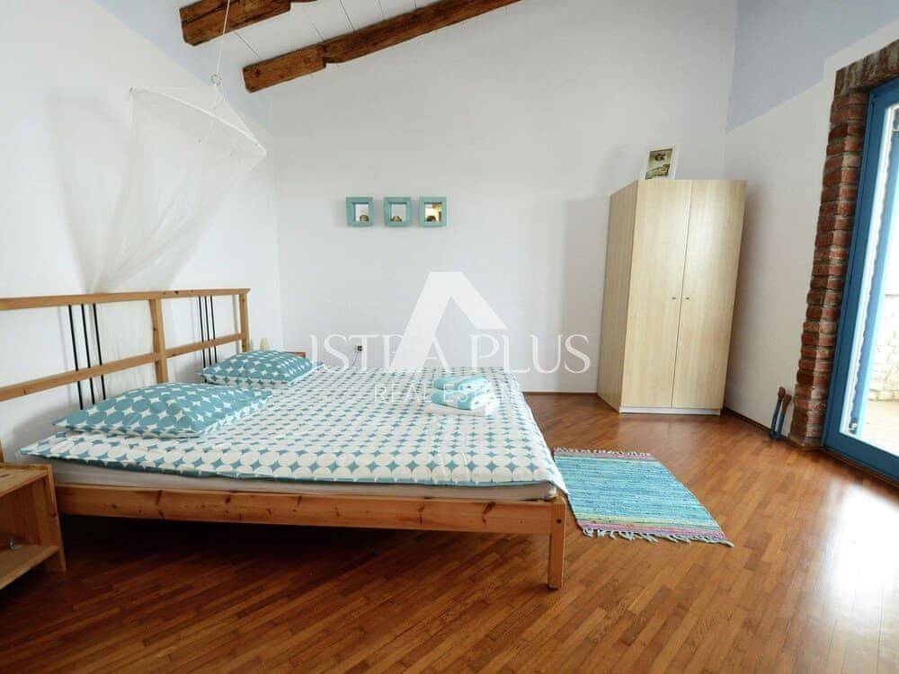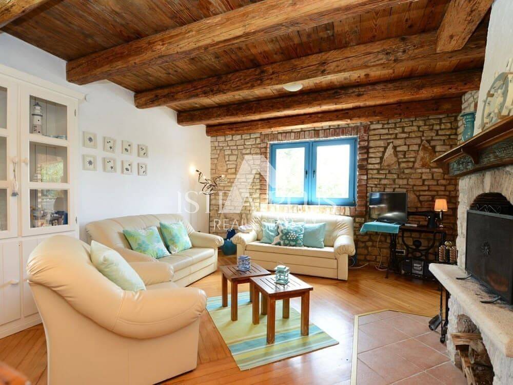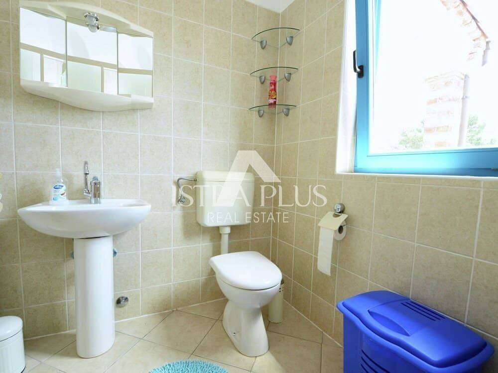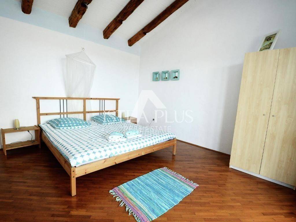 U prizemlju se nalazi hodnik, dnevni boravak, kuhinja i blagovaonica , izlaz na natkrivenu terasu i uređeno dvorište sa bazenom , spavaća soba, ostava, toalet, na katu se nalaze još dvije spavaće sobe i kupaonica, loggia- sa koje se pruža djelomičan pogled na more