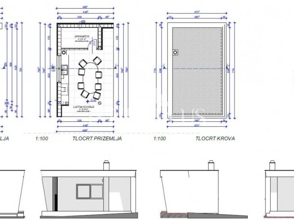 Krovna konstrukcija: armiranobetonska ploča debljine 18 cm , toplinska i hidro izolacija .