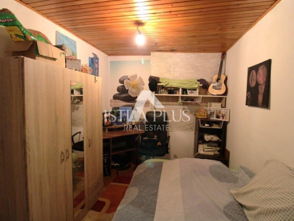 PRILIKA! Kamena kuća u centru malog slikovitog gradića Sv. Lovreč na 3 etaže prizemlje : hodnik , spavaća soba, kuhinja i blagovaonica sa dnevnim boravkom, kupaonica, predsoblje te prostorija koja trenutno služi kao spremište i teretana a može biti i nešto drugo , izlaz na dio dvorišta koji je trenutno u vlasništvu RH ali postoji mogućnost otkupa, predan je zahtjev . Na 1. katu smještene su 3 spavaće sobe te potkrovlje koje je potrebno urediti kuća je useljiva i u funkciji !!