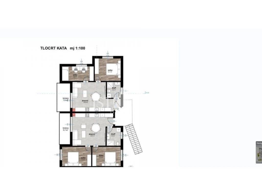 Stan u izgradnji na 1. katu u centru Tara. Stan se sastoji od predsoblja, kuhinje sa blagovaonom i dnevnog boravka, 2 spavaće sobe , kupatila i terase. Stanu pripadaju 2 parkirna mjesta. Stan se grije na električno podno grijanje, te mogućnost grijanja i hlađenja putem klima uređaja. Kupac ne plaća porez na promet nekretnina.