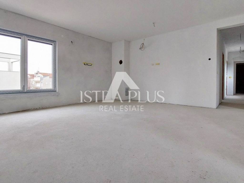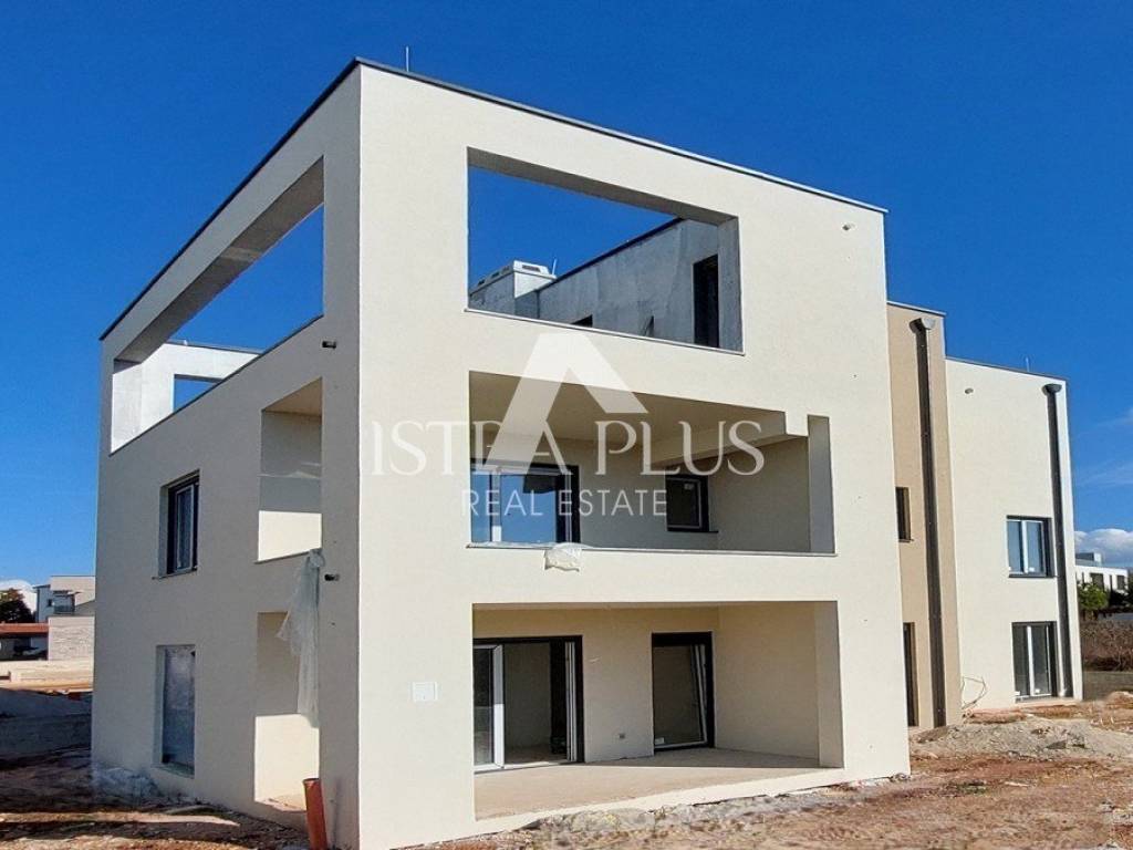Poreč, u mirnom gradskom naselju prodaje se novi stan površine 95 m, sastoji se od dnevnog boravka, kuhinje, blagovaonice, natkrivene terase, hodnika, 3 spavaće sobe, kupaonice i WC-a. Stan se nalazi u prizemlju zgrade sa ukupno 5 stambenih jedinica, ima 4 klima uređaja marke Mitsubishi ( u dnevnom boravku i spavaćim sobama ), podno grijanje u cijelom stanu (dizalica topline), priprema tople sanitarne vode je također putem dizalice topline sa spremnikom od 175 litara, ima i protuprovalna ulazna vrata, PVC prozore s tri stakla, komarnicima i električnim roletama, pripada mu privatna okućnica površine ca 115 m i parkirno mjesto ispred zgrade. Stan se nalazi u slijepoj ulici s malo prometa, udaljen je 500 m od stanice javnog gradskog prijevoza, te 1,5 km od mora/plaže i 3 km od centra Poreča.