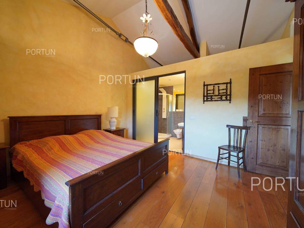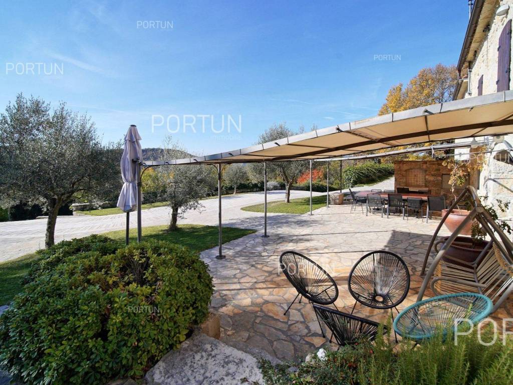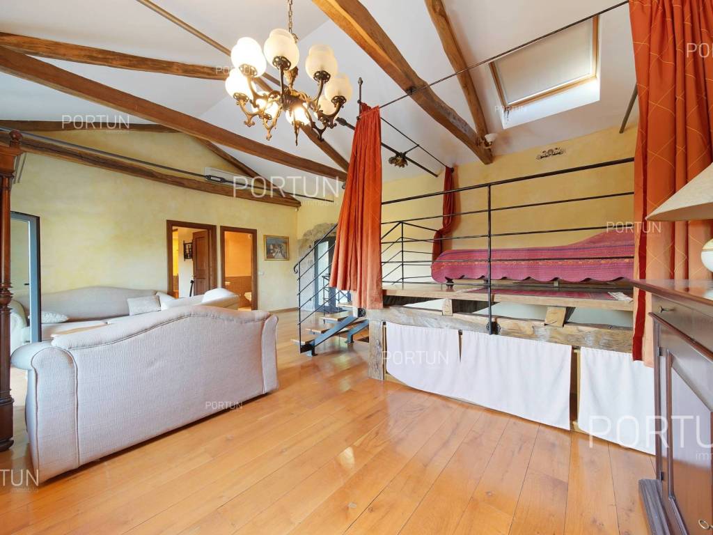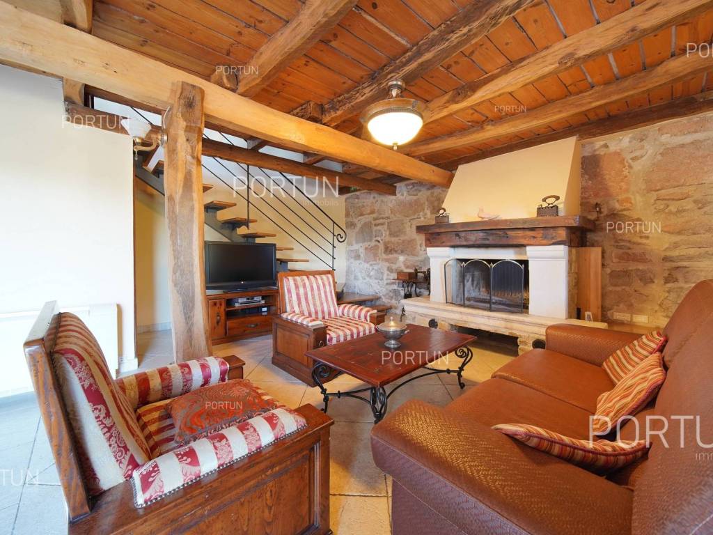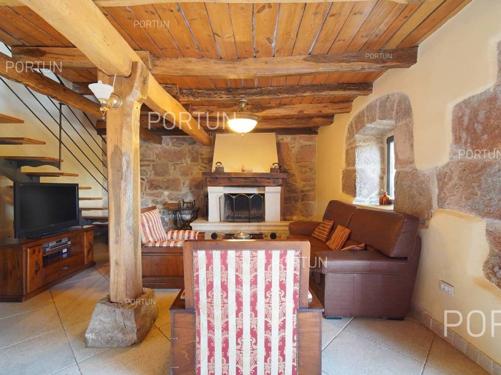 Decentno obnovljeno imanje sa četiri kamene kuće, bazenom, igralištem na zemljištu površine cca 13.000 m2 raspolaže s ukupno 6 spavaćih soba te može ugostiti 12 osoba.