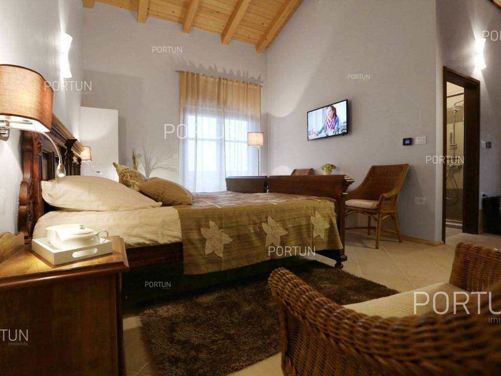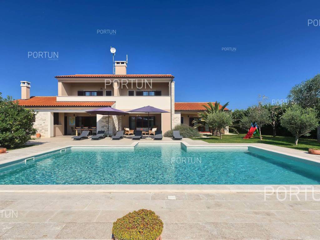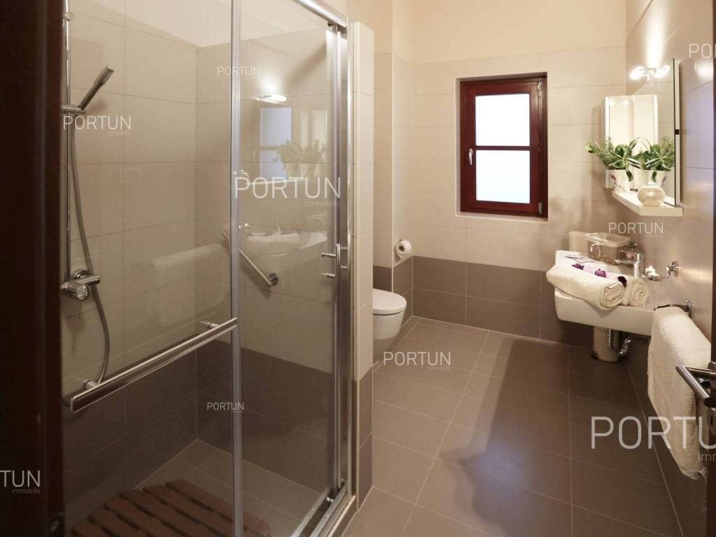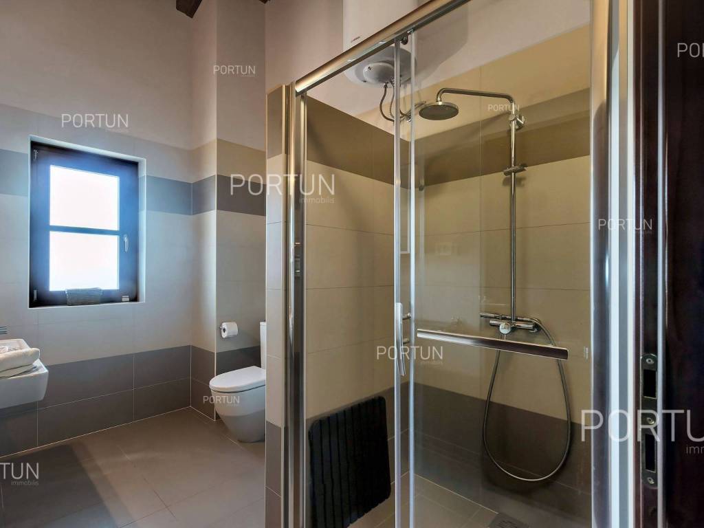 Prostrana seoska vila s 3 spavaće sobe koja ima veliki zeleni vrt od otprilike 1600 četvornih metara smjestila se je na mirnoj lokaciji samo nekoliko trenutaka od jadranske obale. Palme stare preko 30 godina, 37 stabala maslina u dobi od 15-30 godina i nekoliko voćaka (smokve, trešnje, kruške, jabuke, marelice) doprinose mediteranskom doživljaju koji nudi ova rezidencija! Vila se sastoji od dnevnog boravka i blagovaonice koji se protežu na preko 65 m2, kuhinje u obliku slova U, tri spavaće sobe s vlastitim kupaonicama, wc-a i praonice raspoređenih na prizemlju i na prvom katu. U podrumu se nalazi drugi dnevni boravak sa kaminom gdje možete kvalitetno provoditi vrijeme sa svojim najdražima, dok se tokom toplih ljetnih dana možete zabaviti vani gdje se nalazi ljetna kuhinja i bazen sa sunčalištem! Prirodni ambijent i svojstva ove nekretnine recept su za savršen obiteljski odmor u ruralnom dijelu Istre. LokacijaIstra - srcoliki poluotok zaronjen duboko u bistre i modre vode Jadrana, skrovit je vrt ljepote koji otvara vrata sunčanog i toplog Mediterana. U samom srcu Istre, nalazi se Svetvinčenat renesansni gradić bogate povijesne baštine, tradicije i turističke ponude koji osim tradicionalne lokalne kuhinje, nudi mnoštvo sadržaja, atrakcija i manifestacija od kojih je najpoznatiji Srednjovjekovni festival. More | Plaža 14 km Usluge | Dućan 700 m - Kafić ili bar 700 m - Dom zdravlja 8 km - Apoteka 8 km Sport i zabava | Igralište za mali nogomet 900 m - Boćalište 900 m - Adventure park Jangalooz 17 km Promet | Ulaz na autocestu Vodnjan 10 km - Zračna luka Pula 22 km Zanimljivosti | Jama Feštinsko Kraljevstvo 15 km - Park Kažuna 9 km O imanjuU sklopu imanja površine 1.986 četvornih metara, nalaze se: Katnica | 3 Spavaće sobe - 3 Kupaonice - 3 Etaže - 358,23 m2Spremište | 1 Etaža - 24,00 m2Bazen | 60,00 m2RasporedSvijetla vila otvorenog rasporeda, površine 358 četvornih metara, prostire se kroz tri etaže, odnosno kroz podrum, prizemlje i 1. kat. Podrum | Unutarnje dvokrake stepenice vode do podruma, najniže etaže ove vile. U sklopu ovog kata se nalaze drugi dnevni boravak, hodnik i spremište. Prizemlje | Ulaz u vilu je na razini prizemlja. U sklopu ove etaže se nalaze dnevni boravak s blagovaonicom, kuhinja, ljetna kuhinja, spavaća soba s kupaonicom, dvije natkrivene terase, wc, hodnik, natkriveni ulaz i praonica. 1. Kat | Unutarnje dvokrake stepenice vode na 1. kat, najvišu etažu ove vile. Na ovom katu se nalaze dvije spavaće sobe s kupaonicama, dvije natkrivene terase i predsoblje. Pet prostorija je posebno važnih u ovom stanu u ovoj vili, a to su Dnevni boravak s blagovaonicom | Prizemlje - 65,32 m2 - Južna orijentacija - Izlaz na natkrivenu terasu - Vidljive drvene grede - Dvosjedi (2x) - Kožne fotelje (2x) - Niski stolić - TV - Kamin na drva - Regal - Stol - 6 StolicaDrugi dnevni boravak | Podrum - 64,00 m2 - Vidljive drvene grede - Dvosjed - Kožna fotelja - TV - Audio sustav - Kamin na drva - Stol za biliard - Stol - Kožne stoliceKuhinja | 16,38 m2 - Kuhinja u obliku slova U - Tradicionalan dizajn - Kuhinjski pult - Štednjak s pećnicom Bosch - Napa - Perilica suđa - Dvostruki hladnjak BoschLjetna kuhinja | 38,95 m2 - Južna orijentacija - Izlaz u dvorište - Kuhinja u obliku slova U - Kameno ognjište - Kuhinjski pult - Veliki stol - 8 StolicaGlavna spavaća soba | 34,41 m2 - Južna orijentacija - Izlaz na natkrivenu terasu - Vidljive drvene grede - Tradicionalan dizajn - Garderobni ormar - Kupaonica s tušem - Rustikalni krevet - RasvjetaSvojstva vileUlaz u vilu je izveden u razini prizemlja, sa sjeveroistočne strane, a vertikalna komunikacija se odvija putem unutarnjeg stubišta. Osnovne arhitektonske karakteristike ove odlično koncipirane vile su: Etaže | Podrum + Prizemlje + 1. kat Orijentacija | Jugozapad Vanjski zidovi | Izolacija + Zid iz blok opeke 30 cm Armirano betonska međukatna konstrukcija Krovište | Kosi krov pokriven kanalicom Parkiralište za šest automobila Izgrađeno 2013. g.Namještaj i opremaNamještaj | Namještaj nije uključen u cijenu je ali je moguć otkupOprema | Alarm - Rasvjeta - Sanitarije - Drvene obloge zidovaStolarija | Drvena stolarija s dvostrukim ostakljenjem - Aluminijske grilje - Zavjese - Sigurnosna drvena ulazna vrata - Sobna vrata iz masivnog drvaOprema za razonodu i multimedia | TV u dnevnom boravku - TV u svakoj spavaćoj sobi - SAT TV - Audio sistem - Biljarski stolGrijanje i hlađenje | Podno grijanje na struju - Klimatizirano - Ognjište na drva - Kamini na drva (2) - BojleriPodne oblogeVrhunske keramičke pločice | Prizemlje (Sve prostorije) - 1. kat (Sve prostorije)Daščani pod | Podrum (Sve prostorije)OkolišOprema | Vanjska rasvjeta - Automatsko navodnjavanjeOgrade | Živica - Betonski zidKolni ulaz | Metalna vrata - Motorni pogon - Klizno otvaranjePješački ulaz | Metalna vrataVanjski bazen Skimerski bazen 60,00 m2 | Betonska konstrukcija - Obloga: Pebble tec - Slana voda (dezinfekcija pomoću elektrolize klorom) - LED Rasvjeta Sunčalište popločeno kamenom | Ležaljke - Solarni tuš - Hortikulturalno uređenje - Rasvjeta plaže Infrastruktura Priključak na elektroenergetsku mrežu | Trofazna struja | 12 kW Priključak na vodopskrbnu mrežu | Spremnik kišnice 27 m3 Septička jama Mobilni internet Javni makadamski kolni put | Udaljenost do asfaltirane prometnice 50 mStatus nekretnineZemljište se u cijelosti nalazi unutar granica građevinskog područja. DokumentacijaRaspoloživa dokumentacija | Kopija katastarskog plana - Geodetska situacija - Rješenje o uvjetima građenja - Uporabna dozvola - ProjektObračun površineU površinu vile (358,23 m2) uračunate su površine ovih prostorija:Stambeni prostor (Podrum + Prizemlje + 1. kat) = 302,52 m2*Natkrivene terase (Prizemlje + 1. kat) = 55,71 m2***Površine su obračunate s koeficijentom k= 1,00**Površine su obračunate s koeficijentom k= 0,50Izvor podataka = ProjektUkupna površina zemljišta uključujući površinu ispod
