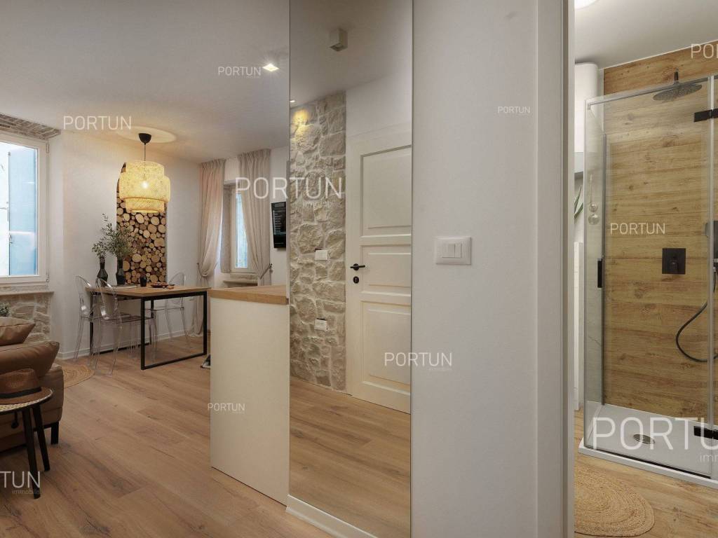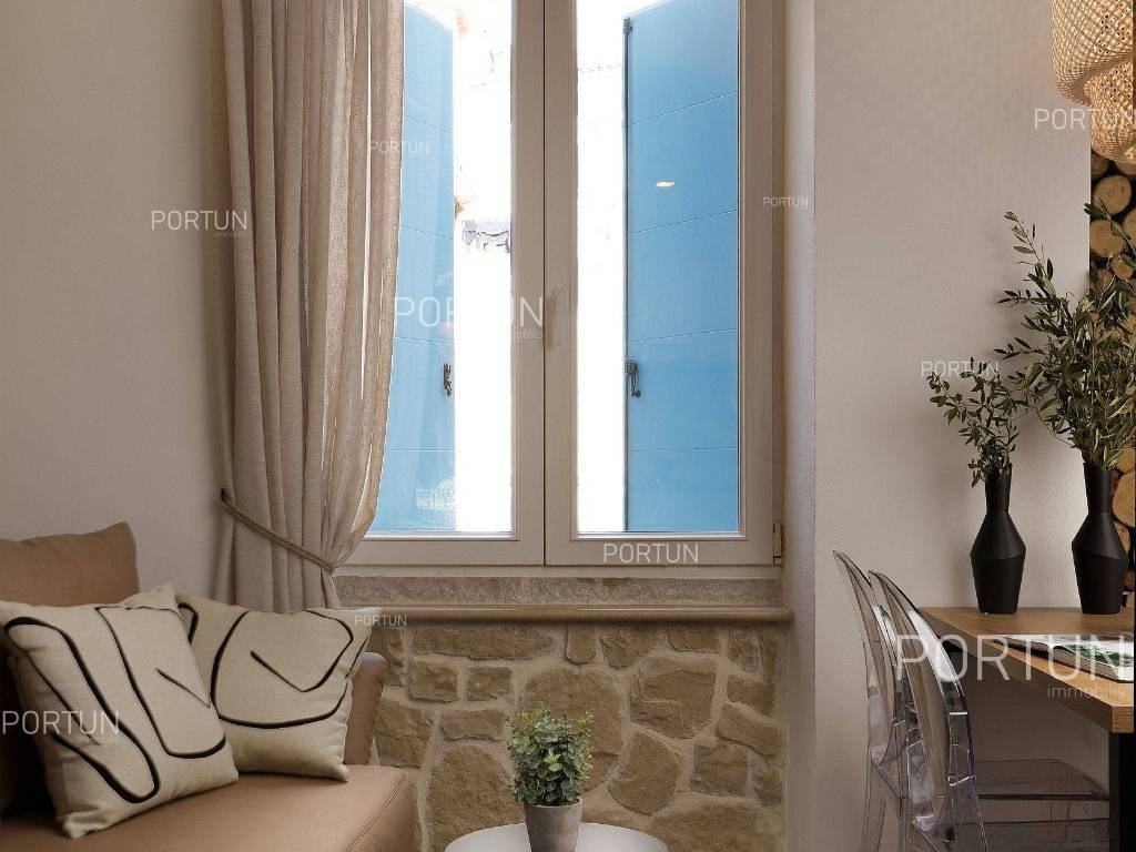 Svježe renovirani apartman u srcu starog Rovinja, svijetlog, modernog interijera kojemu kameni zidovi daju pečat Mediterana nalazi se na drugom katu stare kuće te pruža smještaj za četiri osobe u dvije spavaće sobe. Površina stana iznosi cca. 50 m2.Udaljenost do plaže Monte iznosi svega 300 m. Stan se prodaje potpuno opremljen, a novom kupcu preostaje donijeti samo osobne stvari. Tijekom ljetnih mjeseci stan se iznajmljuje turistima.Kuća je vjerojatno izgrađena tijekom devetnaestog stoljeća, a stan je temeljito renoviran 2022. godine. Kuća se sastoji od četiri stana. Kuća ima jednu podrumsku etažu, prizemlje i četiri nadzemne etaže. Vertikalna komunikacija omogućena je drvenim unutarnjim stepeništem. Masivni nosivi zidovi izgrađeni su iz kamena. Izvedena je drvena međukatna konstrukcija. Ugrađena je drvena krovna konstrukcija. Krov je izveden kao kosi, pokriven kanalicom.LokacijaIstra je plavo-zelena oaza isprepletena mrežom obiteljskih agroturizama, vinskih podruma s vinima autohtonih sorta, biciklističkim stazama te rajskim plažama. Rovinj je prava zvijezda obalne Istre najpoznatija po starom gradu isprepletenom strmim kamenim ulicama, malim trgovima isprekidanim visokim crkvenim tornjem koji se uzdiže s najviše točke i nudi pogled na rovinjski arhipelag. More Plaža Baluota 400 m Limski zaljev 16 km Usluge Dućan 50 m Kafić ili bar 20 m Gostionica ili restoran 100 m Osnovna škola 260 m Vrtić 500 m Dom zdravlja 600 m Apoteka 180 m Marina 1,5 km Sport i zabava Nogometno igralište 1,8 km Igralište za rukomet 1,6 km Igralište za košarku 2,4 km Javni bazen 3 km Park šuma zlatni Rt 2,5 km Mjesta u blizini Bale 14 km Kanfanar 16 km Pula 39 km Promet Ulaz na autocestu Kanfanar 16 km Zračna luka Pula 39 km Zanimljivosti Ruševine srednjovjekovnog Dvigrada 20 km Posebni ornitološki rezervat Palud 9 km RasporedUnutarnje jednokrake stepenice vode do ulaza u stan na 2. katu. Dvosoban stan klasičnog rasporeda, površine 50 četvornih metara sastoji se od dnevnog boravka s kuhinjom i blagovaonicom, dvije spavaće sobe i jedne kupaonice. Dvije ključne prostorije u ovom stanu su dnevni boravak s kuhinjom i blagovaonicom i glavna spavaća soba, čije glavne značajke su: Dnevni boravak s kuhinjom i blagovaonicom 2. kat Sjeveroistočna orijentacija Pogled na gradsku ulicu Kožna sjedeća garnitura Niski stolić TV Moderna rasvjeta Kuhinja u jednoj liniji Štednjak Hladnjak Stol 5 StolicaGlavna spavaća soba 2. kat Južna orijentacija Garderobni ormar Stilski krevet Toaletni stolićParking Parking Valdibora 300 mSvojstva kućeStan se nalazi u kamenoj kući koja se prostire kroz podrum, prizemlje i četiri nadzemne etaže. Ulaz u kuću je izveden u razini prizemlja, sa sjeverozapadne strane, a vertikalna komunikacija se odvija putem unutarnjeg stubišta. Osnovne arhitektonske karakteristike ove kamene kuće su: 4 Stana Vanjski zidovi Kameni zid 60 cm Drvena međukatna konstrukcija Krovište Kosi krov pokriven kanalicom E. Certifikat U izradi Izgrađeno cca. 1800. g. Obnovljeno 2022. g. (Stan)Namještaj i opremaNamještaj Sav namještaj je uključen u cijeniOprema Rasvjeta Novodvorski Stilske sanitarije Hansgrohe Obloge zidova Mirage BlankoStolarija PVC Prozori Drvene škurnice Masivna drvena ulazna vrata Klasična sobna vrataMultimedia 2 TV-aGrijanje i hlađenje Klima uređaj Mitsubishi Električni bojlerPodne obloge Keramičke pločice ParketInfrastruktura Priključak na elektroenergetsku mrežu sa vlastitim brojilom Vlastiti priključak na vodopskrbnu mrežu Priključak na kanalizaciju Kamenom popločana ulica Udaljenost do asfaltirane prometnice 65 mIznajmljivanjePotpuno opremljeno za iznajmljivanje. DokumentacijaRaspoloživa dokumentacija Građevinska dozvolaObračun površineNavedena površina stana uključuje:Stambeni prostor = 50,00 m2**Površine su obračunate s koeficijentom k= 1,00Izvor podataka = Neslužbena izmjera prostora