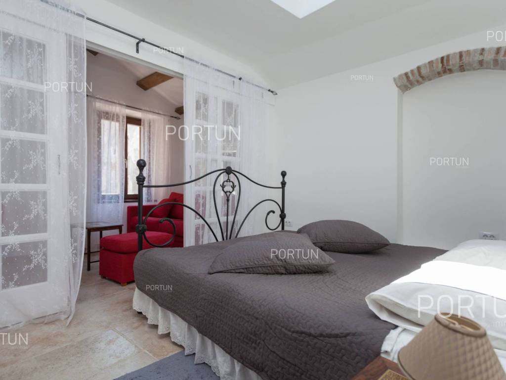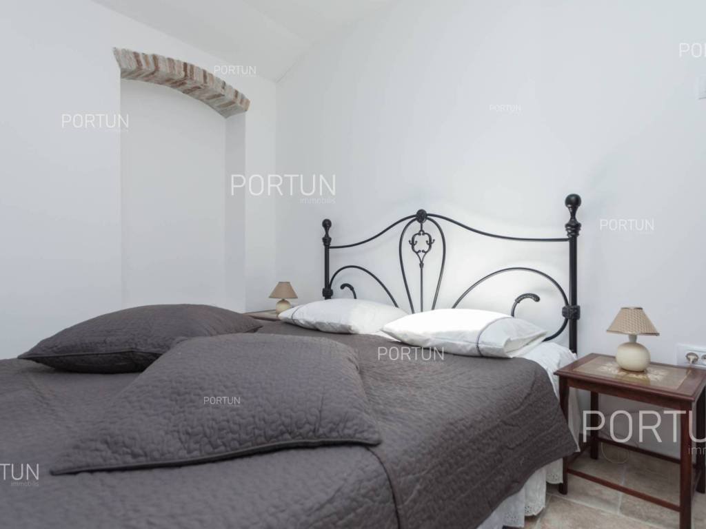 Namješten stan u centru Rovinja, nedaleko tržnice raspolaže s jednom spavaćom sobom, a još dvoje ljudi može se smjestiti na kauču u dnevnom boravku. Smješten na trećem katu stare kamene kuće, ovaj temeljito obnovljen stan ne zahtijeva nikakva dodatna ulaganja i odmah je spreman za useljenje. Izgrađen je oko 1800. godine, a temeljito je obnovljen 2012. godine. Stan se nalazi u izvanrednoj lokaciji u centru grada, nedaleko tržnice. Udaljen je 220 metara od parkinga Valdibora i 350 metara od plaže. Sadrži dnevni boravak, kuhinju s blagovaonicom, spavaću sobu, kupaonicu s tušem, predsoblje i ostavu. Sav namještaj je uključen u cijenu, a stan ima i klima uređaj. LokacijaIstra - spoj spektakularne plave obale i šumske, zelene unutrašnjosti koja predstavlja pravu oazu za svakoga tko bi želio ovdje pronaći svoj kutak pod suncem. Na zapadnoj obali Istre nalazi se pitoreskni Rovinj poznat po romantičnoj starogradskoj jezgri, zaštićenoj park šumi Zlatni rt visoke estetske i botaničke vrijednosti, bogatoj gastronomskoj ponudi i primamljivim plažama. Kamenom popločana uličica u starom dijelu Rovinja, gdje se nalazi stan, idealna je za otkrivanje brojnih sadržaja i zanimljivosti u blizini:More | Plaža 350 m Usluge | Dućan 40 m - Gostionica ili restoran 10 m - Osnovna škola 300 m - Dom zdravlja 700 m - Apoteka 280 m - Marina 200 m Sport i zabava | Igralište za košarku 350 m - Javni bazen 3 km - Park šuma zlatni Rt 2 km Mjesta u blizini | Bale 13 km - Poreč 34 km Promet | Ulaz na autocestu Kanfanar 15 km - Zračna luka Pula 40 km Zanimljivosti | Posebni ornitološki rezervat Palud 10 km RasporedUnutarnje jednokrake stepenice vode do ulaza u stan na 3. katu. Funkcionalno uređen stan, površine 45 četvornih metara sastoji se od dnevnog boravka, kuhinje s blagovaonicom, jedne spavaće sobe, kupaonice s tušem, predsoblja i ostave. Parking Parking Valdibora 220 mSvojstva kućeStan se nalazi u kamenoj kući koja se prostire kroz prizemlje i tri nadzemne etaže. Ulaz u kuću je izveden u razini prizemlja, sa jugozapadne strane, a vertikalna komunikacija se odvija putem unutarnjeg stubišta. Osnovne arhitektonske karakteristike ove dobro održavane kamene kuće su: 3 Stana - 1 Poslovni prostor Vanjski zidovi | Kameni zid Drvena međukatna konstrukcija Krovište | Kosi krov pokriven kanalicom Izgrađeno cca. 1800. g. Temeljito obnovljeno 2012. g. (Stan)NamještajNamještaj | Sav namještaj je uključen u cijeniStolarija | Drvena stolarija s dvostrukim ostakljenjem - Drvene škurnice - Krovni prozori - Sigurnosna ulazna vrata - Drvena sobna vrataGrijanje i hlađenje | Klima uređajPodne obloge | Vrhunske keramičke pločiceInfrastruktura Priključak na elektroenergetsku mrežu sa vlastitim brojilom Vlastiti priključak na vodopskrbnu mrežu Priključak na kanalizaciju Kamenom popločana ulica | Udaljenost do asfaltirane prometnice 38 mDokumentacijaRaspoloživa dokumentacija | Etažni elaborat - ProjektObračun površinePovršina stana uključuje (45,00 m2): Stambeni prostor = 45,00 m2 x 1,00 = 45,00 m2Izvor podataka = Projekt