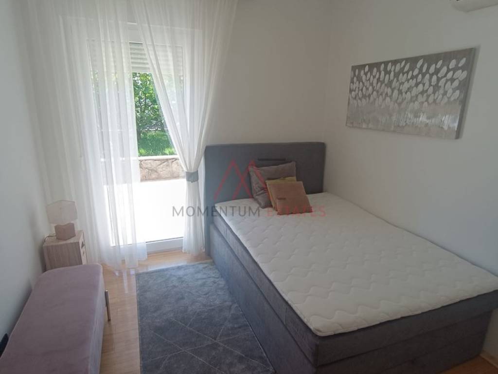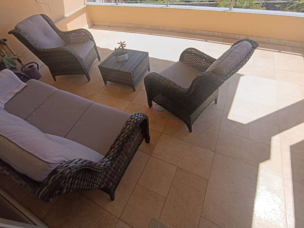 Na odličnoj lokaciji u zgradi novije gradnje sa ukupno 6 stanova, iznajmljuje se stan koji se sastoji od dvije spavaće sobe, dnevnog boravka, kuhinje, dvije kupaone površine 90m2, te južne terase 20m2 i bočne terase 30m2. Stan pruža puno komfora i jednistvena je nekretnina za najam. Ima garažu (30m2) te vanjsko parkirno mjesto, zajednički bazen koji koriste stanari zgrade. Režije se plaćaju prema vlastitoj potrošnji dok pričuvu plaća vlasnik. Polog je obavezan. U slučaju dugoročnog najma moguć je dogovor oko cijene.