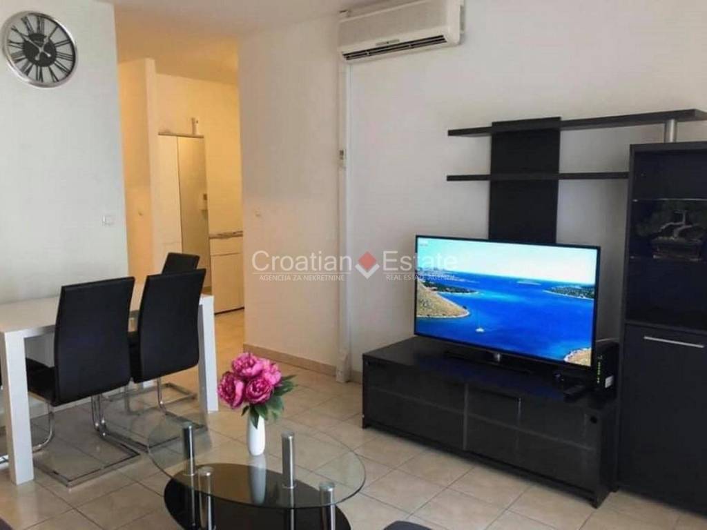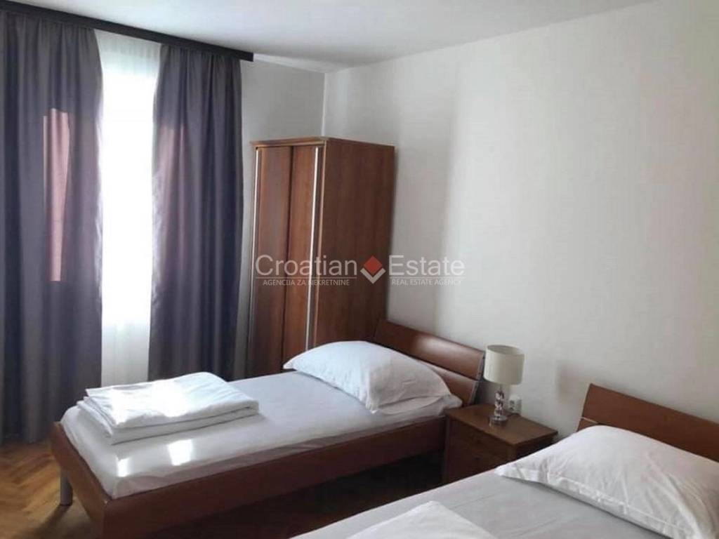 Iznajmljujemo dvosobni stan, smješten na prvom katu novije zgrade s liftom. Stambena površina stana iznosi 70m2, a sastoji se od kuhinje, dnevnog boravka s blagovaonicom, dvije spavaće sobe, kupatila, ostave, WC-a i lođe.