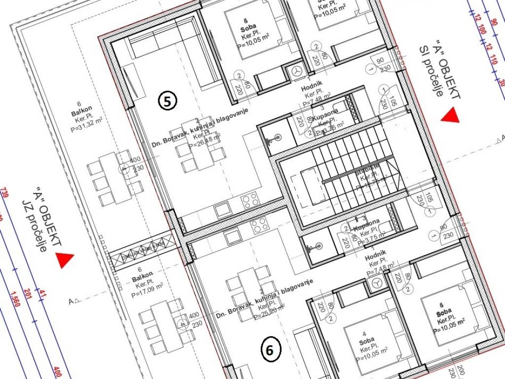 Prodaje se prostrani trosobni apartman oznake br. 5 ukupne površine 89,13 m2 na 2. katu novogradnje na mirnoj lokaciji u Staroj Novalji.