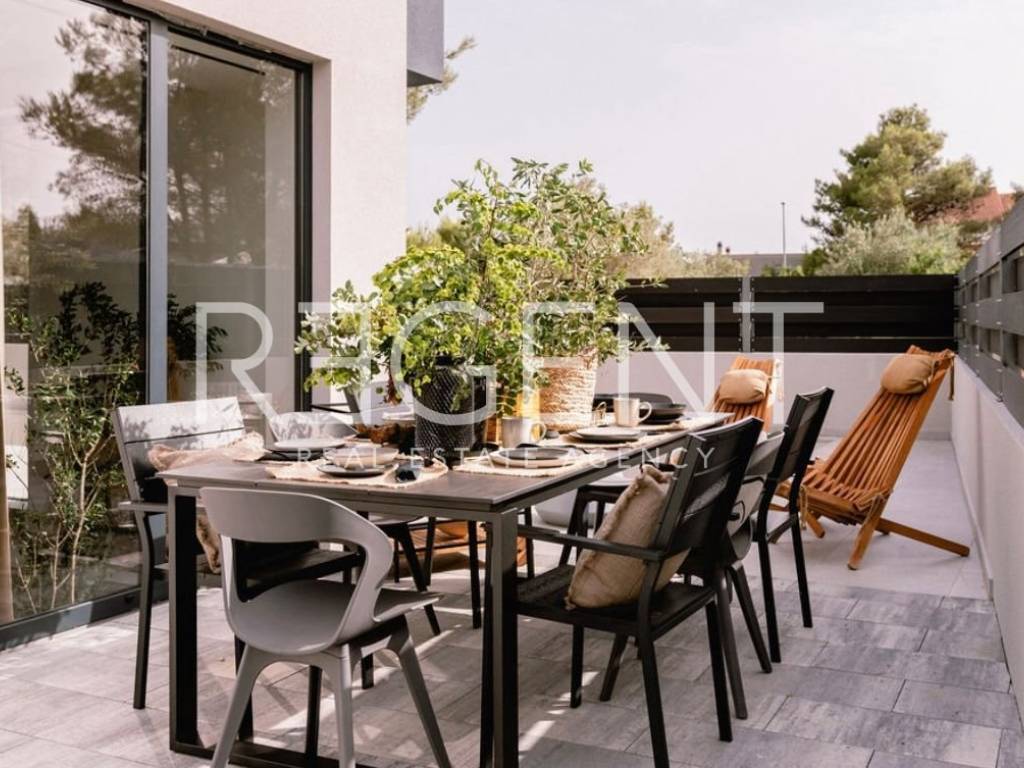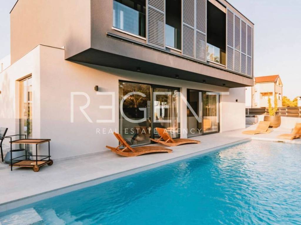 U blizini Vodica na samo 3 km udaljenosti od Šibenika te samo 250 metara od mora nalazi se prekrasna moderna novoizgrađena vila koja pruža savršenu ravnotežu između privatnosti i blizine svih pogodnosti. Vila je dizajnirana u suvremenom stilu s elegantnim i čistim linijama. Vanjska fasada kombinira moderne materijale kao što su staklo, drvo i beton, stvarajući privlačan izgled. Vila je okružena lijepo uređenim vrtom.Ulaz u vilu vodi vas u prostrani i moderno uređen dnevni boravak. Veliki prozori omogućuju da obilje prirodnog svjetla prodire u prostoriju, stvarajući svijetao i otvoren ambijent. Namještaj je suvremenog dizajna s naglaskom na udobnost i estetiku. Vila se sastoji od četiri sobe i tri kupaonice. Svaka soba je uređena modernim namještajem i pažljivo odabranim dekoracijama. Eksterijer vile sastoji se od dvorišta u kojem se nalazi bazen te natkrivena terasa.S obzirom na svoju blizinu mora i udaljenost od centra Šibenika, ova moderna vila pruža savršenu kombinaciju privatnosti i praktičnosti. Pruža lagan pristup prekrasnim plažama i uživanje u šarmu i bogatoj povijesti Šibenika. Kontaktirajte nas za više informacija!