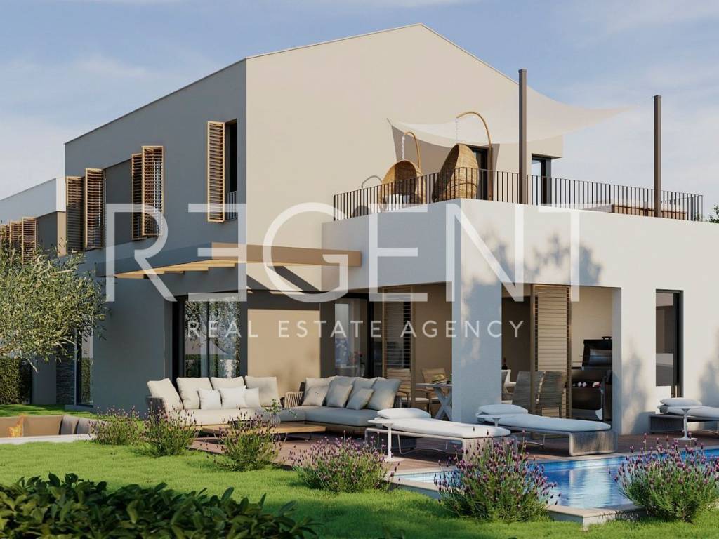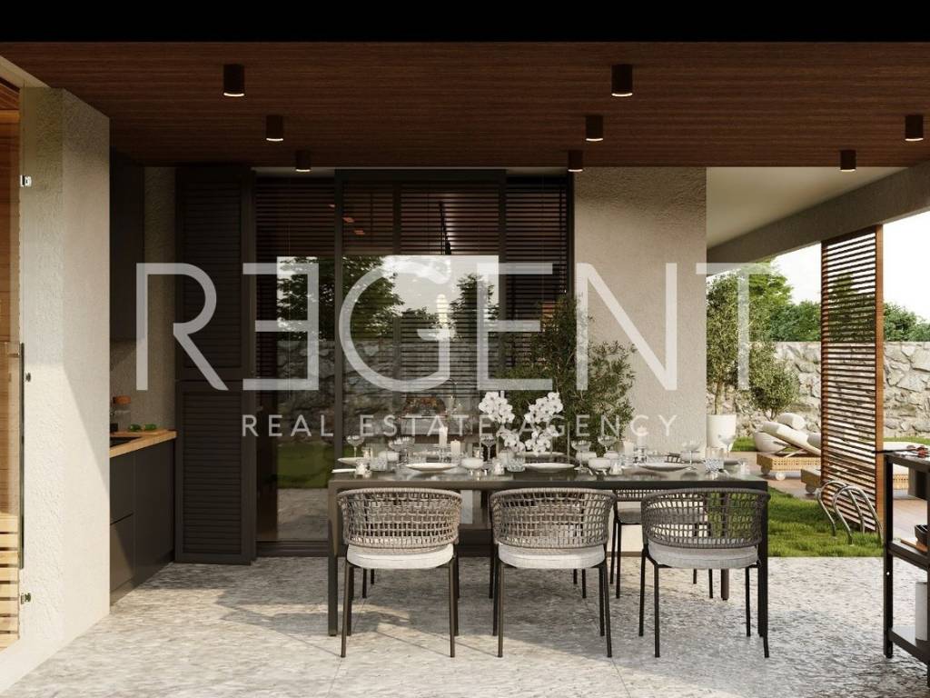 Luksuzna vila s bazenom u modernom stilu smještena je u predivnom okruženju, samo 4 kilometra udaljena od Poreča. Vila ima ukupnu površinu od 165 kvadratnih metara i sastoji se od dvije etaže, pružajući sav komfor i luksuz za vaš boravak.Prizemlje vile sastoji se od prostranog dnevnog boravka, koji je povezan s otvorenom kuhinjom i blagovaonicom. Tu je i udobna spavaća soba te WC za goste. Vanjski dio kuće oduševljava vas prekrasnim bazenom okruženim sunčalištem. Također ćete pronaći terasu s vanjskom kuhinjom i blagovaonicom, savršenim mjestom za opuštanje i zabavu na otvorenom. Osim toga, vila ima saunu, tehničku sobu i predivno uređen vrt koji će vam omogućiti da uživate u mirnom okolišu.Na prvom katu vile nalaze se dvije prostrane spavaće sobe, svaka s vlastitom kupaonicom, što pruža privatnost i udobnost za goste ili obitelj. Također na ovom katu nalazimo praonicu i skladište za praktičnost, s prvog kata pruža se izlaz na prostranu terasu koja je opremljena jacuzzijem, savršenim mjestom za opuštanje uz panoramski pogled na okolicu.Vila je potpuno opremljena i uređena u modernom stilu interijera, stvarajući jedinstvenu atmosferu i osjećaj topline i udobnosti.Završetak radova planiran je za veljaču 2024 godine.