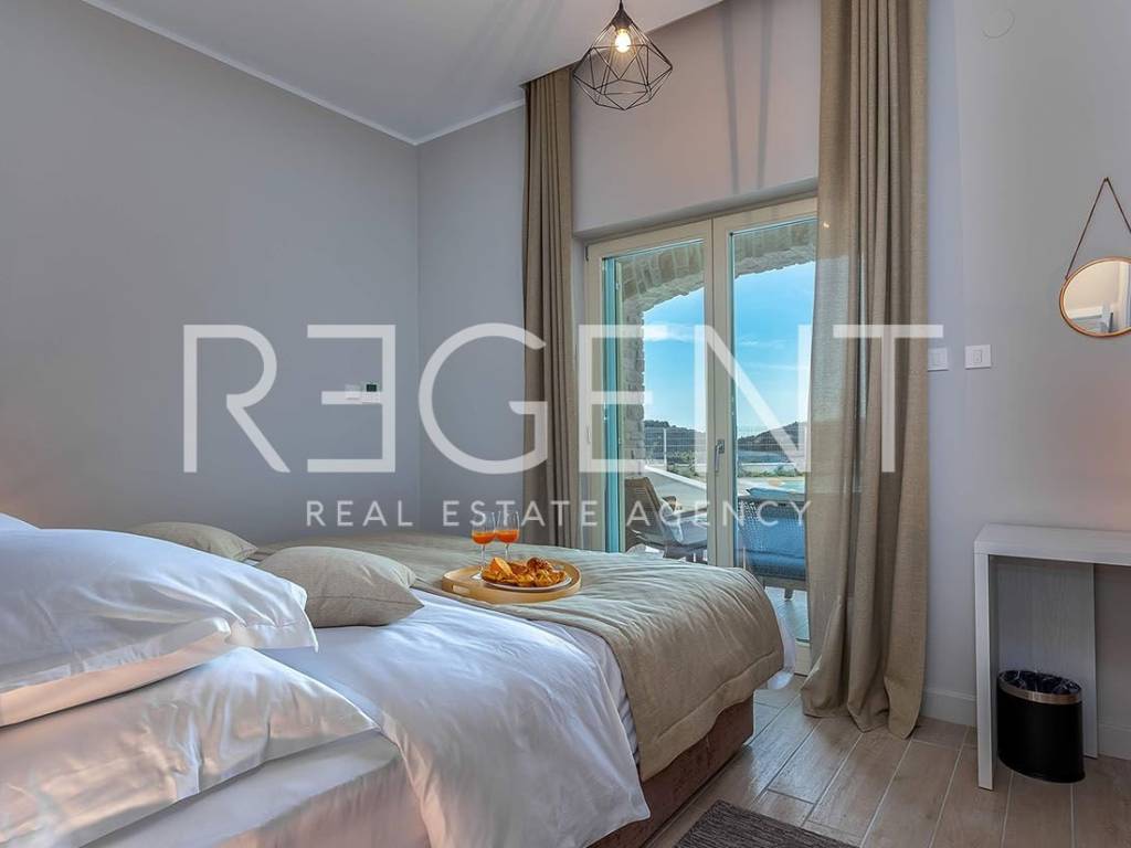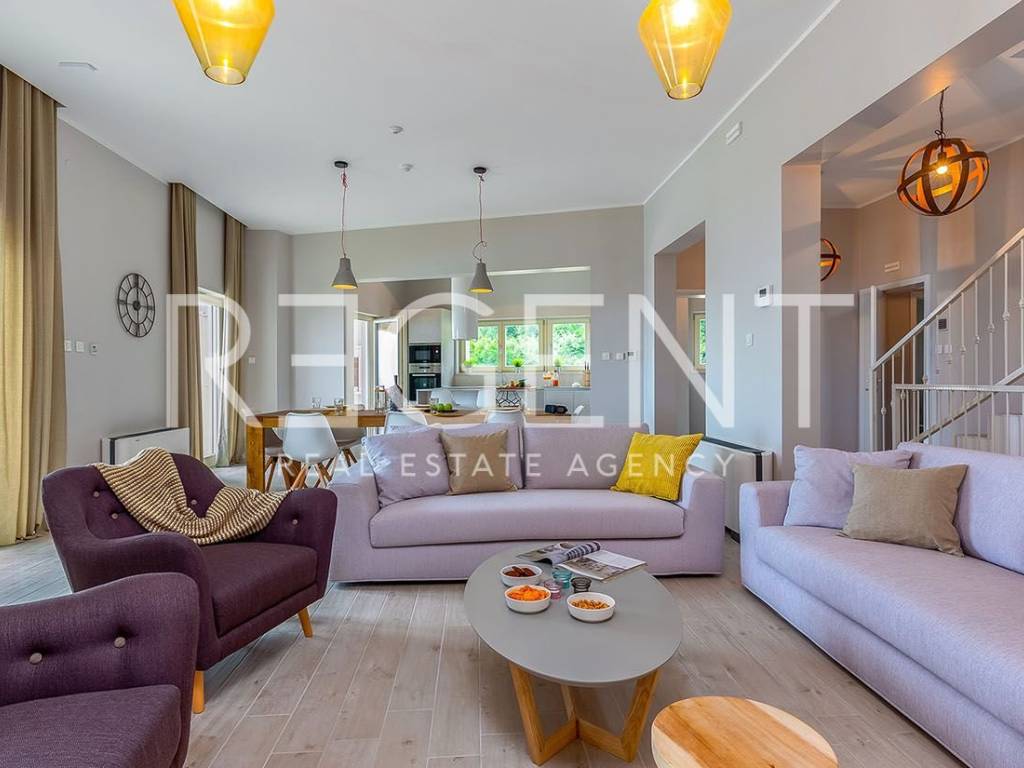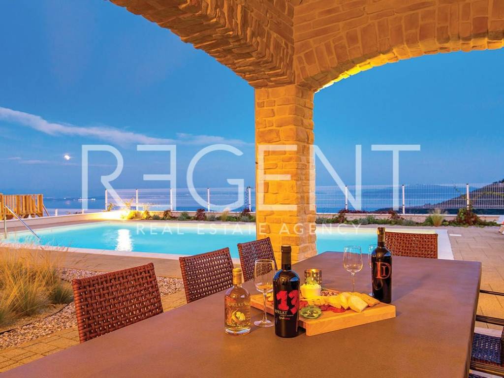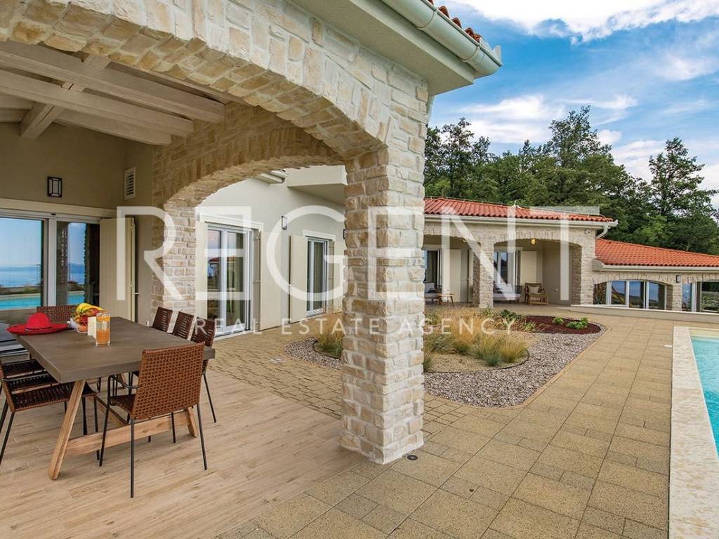 Ova vila jedinstveni je spoj mora i planine. Nalazi se na mirnoj lokaciji, daleko od gradske buke. Ima privatnost i visok stupanj sigurnosti. Vila je okrenuta prema jugu, s pogledom na more i okolni arhipelag. Povezuje modernu arhitekturu, vrhunsku tehnologiju i luksuzni dizajn. Ovaj objekt je jedinstven zbog karakteristične arhitekture, ekološki prihvatljive gradnje, napredne tehnologije, solarnog grijanja te smještaja u prirodi, na granici Parka Prirode Učke. Vila se nalazi na parceli od 1175 m2, stambene površine od 400 m2. Prostire se na tri etaže s pet spavaćih soba i pet kupaonica. Kuhinja i blagovaonica spoj su modernog dizajna i funkcionalnosti, čineći prostor dovoljno toplim da se osjećate kao kod kuće. Interijer je namješten za potpuno opuštanje, posebnim odabirom boja i ulaskom svjetla. Vrhunsko opremljena kupaonica daje još jednu dimenziju spa ugođaju. Vanjska terasa i konoba savršena su mjesta za objedovanje i druženje. Grijani bazen mjesto je u kojem ćete moći uživati tijekom dana i tijekom večeri.Vila je kategorizirana s 5 zvjezdica, a nalazi se u Veprincu – drevnom gradiću iznad opatijske rivijere. Prema povijesnim nalazima, nastao je vjerojatno na temeljima pretpovijesne gradine, a porijeklo imena obično se dovodi u vezu s biljkom veprinom koja ovdje raste u izobilju. Veprinac krasi netaknuta priroda i ugodna klima.