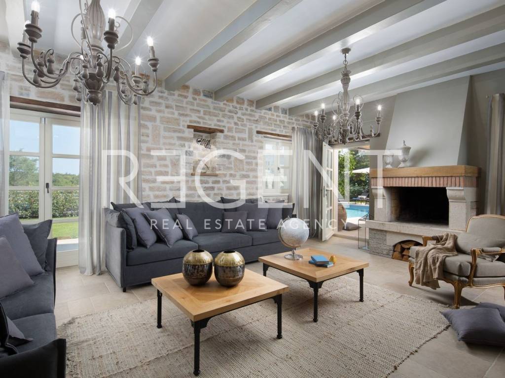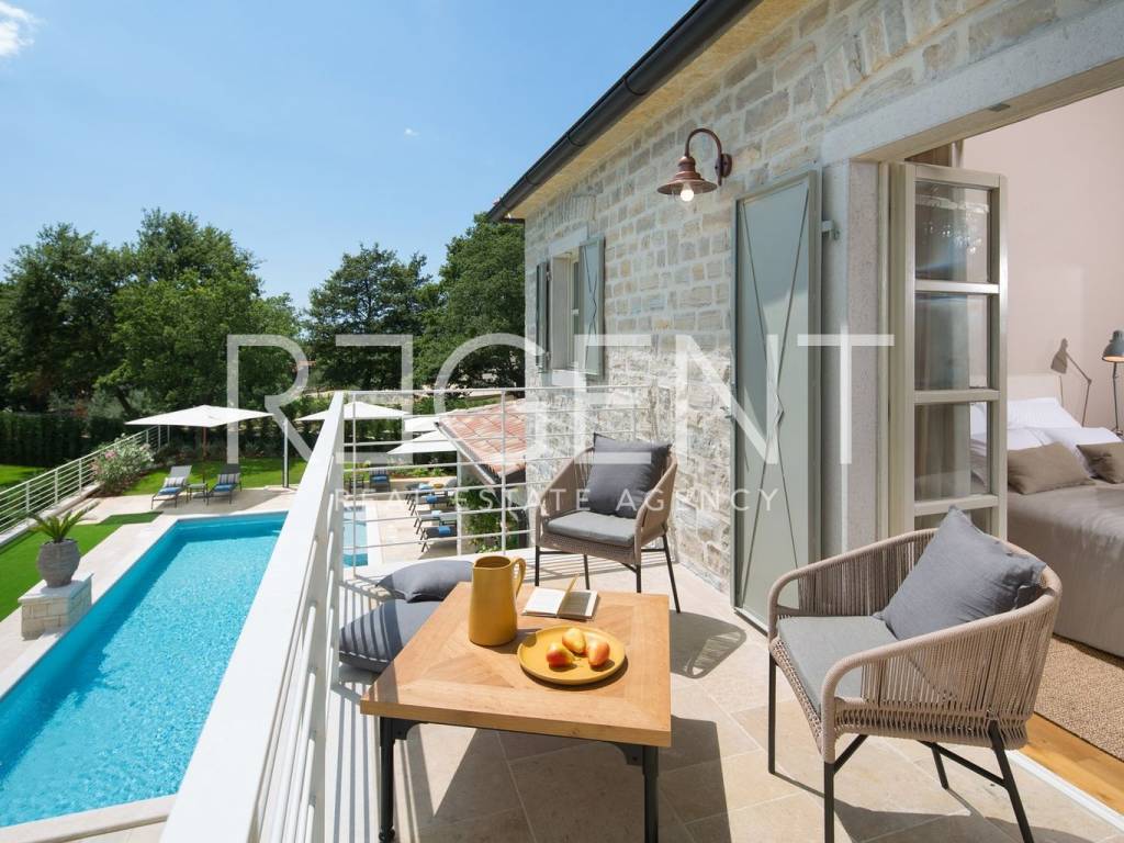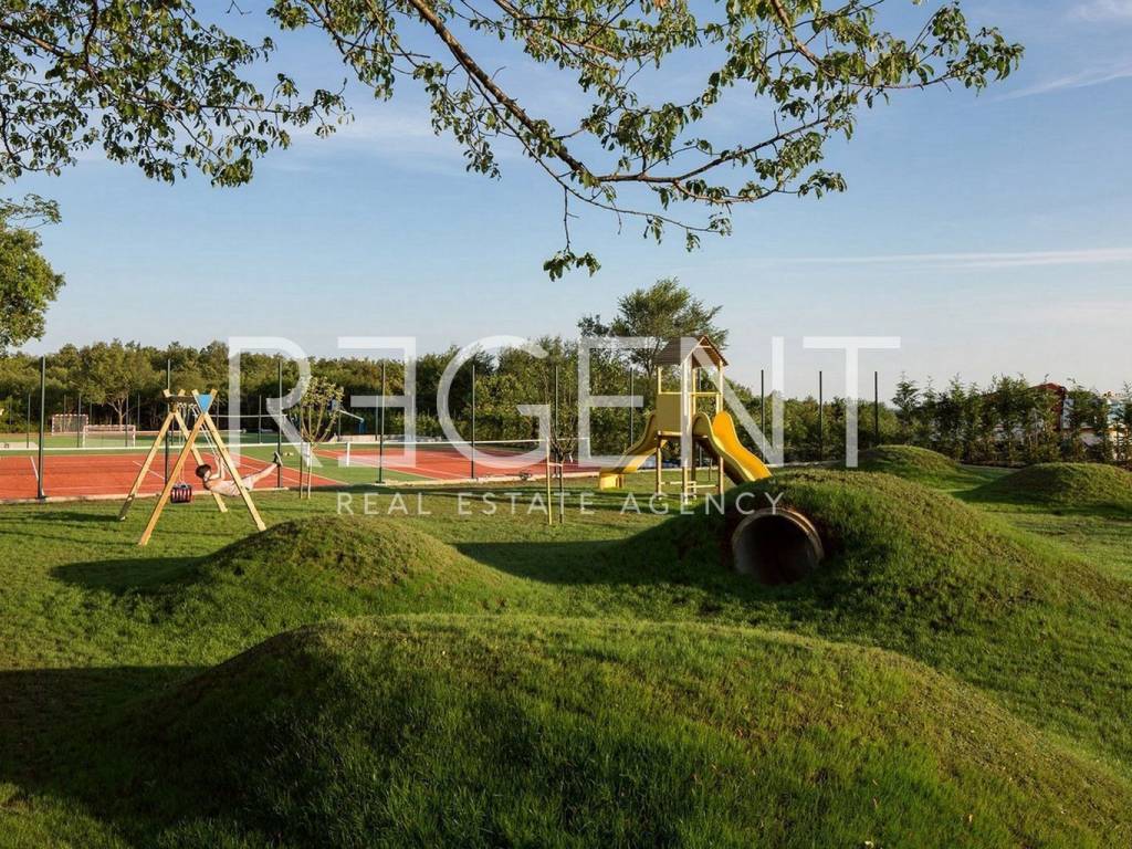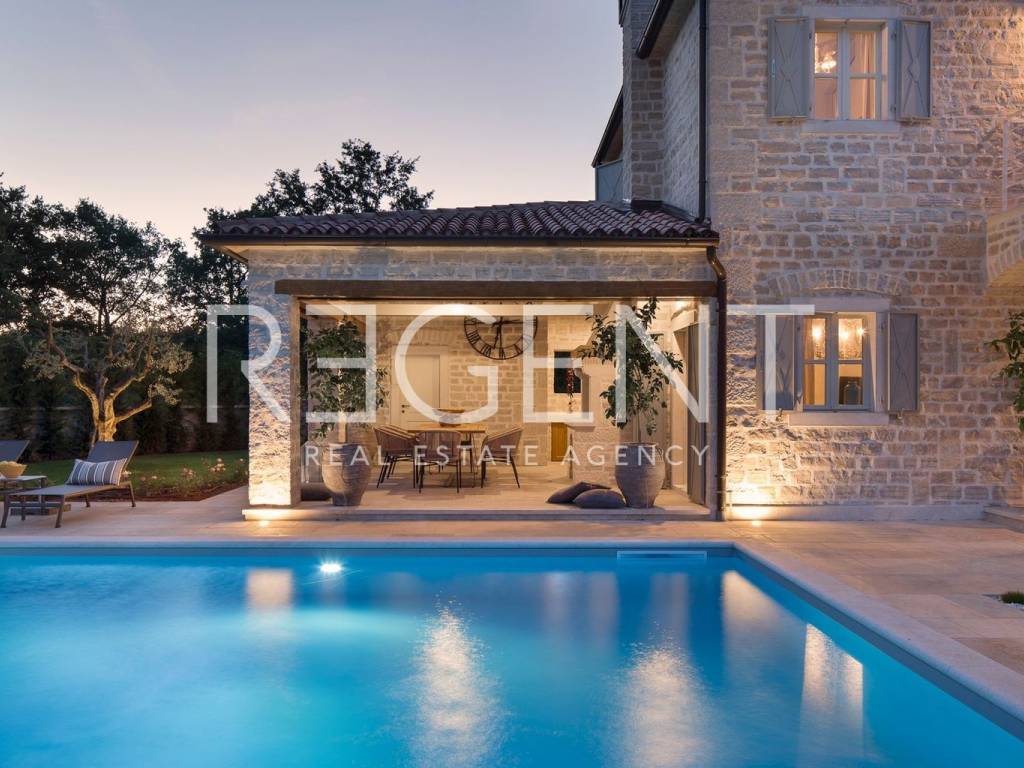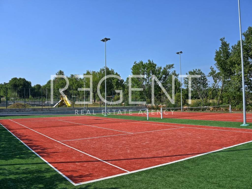 Vila Elena predstavlja skladan spoj luksuza, dizajna i funkcionalnosti, smještena na parceli od 880 m², s ukupnom površinom interijera od 359 m². Ova elegantna vila prostire se na dvije etaže – prizemlje i kat – i osmišljena je za ugodan cjelogodišnji boravak, bilo da je riječ o odmoru, svakodnevnom životu ili investiciji za najam. Poseban dodatak ovoj nekretnini čini sportsko-rekreacijski kompleks površine 5.600 m², u kojem vlasnici imaju vlasnički udio od 1/4. Kompleks obuhvaća osvijetljene terene za tenis (2), boćanje (2), nogomet, košarku i odbojku, dječje igralište s travnatom površinom i spravama, te zonu za vanjski fitness. U sklopu kompleksa nalazi se i zajednički eko-povrtnjak – idealan za one koji žele uzgojiti vlastito organsko povrće. U prizemlju vile smješten je prostrani dnevni boravak s otvorenim kaminom, povezan s velikom natkrivenom terasom. Terasa nudi prostor za objedovanje, ljetnu kuhinju s kaminom za roštiljanje, sunčalište te vanjsku kupaonicu s tušem. Bazen dimenzija 11,60 m x 4,60 m poziva na uživanje u toplim danima i večerima. Na prizemlju se također nalaze potpuno opremljena kuhinja s blagovaonicom, dvokrevetna soba s bračnim krevetom, vlastitom kupaonicom i izlazom na terasu, zaseban WC, kao i dodatni tuš/WC uz terasu. Kat vile donosi još tri spavaće sobe – master sobu s kupaonicom i privatnom terasom, drugu sobu s garderobom, kupaonicom i izlazom na terasu, te treću sobu s dva odvojena kreveta i vlastitom kupaonicom. Grijanje je riješeno centralnim sustavom na lož ulje, uz podno grijanje u prizemlju i dizajnerske radijatore na katu. Svi prostori su klimatizirani. Podovi su obloženi talijanskim pločicama u prizemlju i hrastovim parketom debljine 14 mm na katu, dok su unutarnje stepenice također obložene masivnim hrastom. Unutar ograđene parcele nalaze se dva natkrivena parkirna mjesta, zatvorena kliznim vratima. Cijela parcela ograđena je visokim kamenim zidom, a s unutarnje strane dodatno ozelenjena živom ogradom visine 2 metra, čime je osigurana potpuna privatnost. Vila je opremljena alarmnim sustavom spojenim na nadzorni centar, kao i video nadzorom, pružajući maksimalnu sigurnost i mir. Vrhunska lokacija, blizina centra Poreča, 1,5 km udaljenosti od mora, u blizini svih bitnih sadržaja a istovremeno dovoljno udaljeno za maksimalnu privatnost. Kontaktirajte nas za više informacija o ovoj jedinstvenoj nekretnini u srcu Istre!