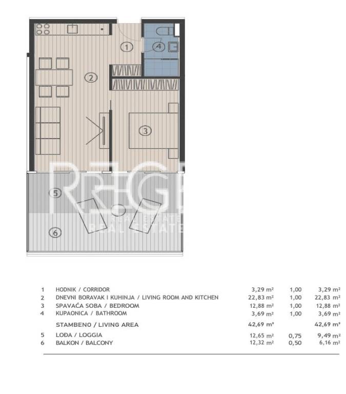 Posredujemo pri prodaji jednosobnog stana u mjestu Krilo Jesenice, koji pruža prekrasan pogled na more, u projektu stambene zgrade u trenutnoj fazi izgradnje.Stan se nalazi na drugom katu novogradnje, ukupne površine 58,34 m² i sadrži:hodnik 3,29 m² kuhinja, blagovaonica i dnevni boravak 22,83 m² spavaća soba 12,88 m² kupaonica 3,69 m² loggia 12.65 m² balkon 12.32 m² Novogradnja će biti izgrađena do kraja 2026. godine po visokim standardima moderne gradnje rabeći najkvalitetnije materijale.Uz kupnju stana obvezna je kupnja parkirnog mjesta u garaži od 30.000 eura.Lokacija stambene zgrade pruža prekrasan pogled na more te je u blizini prekrasnih plaža i svih bitnih životnih sadržaja. Krilo Jesenice udaljeno je svega 15 kilometara južno od Splita, a opisuju ga tihe uvale te kupališta ispred privatnih posjeda i pansiona. Idealno je za miran odmor s obitelji.