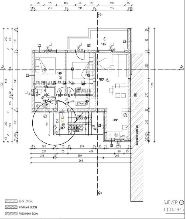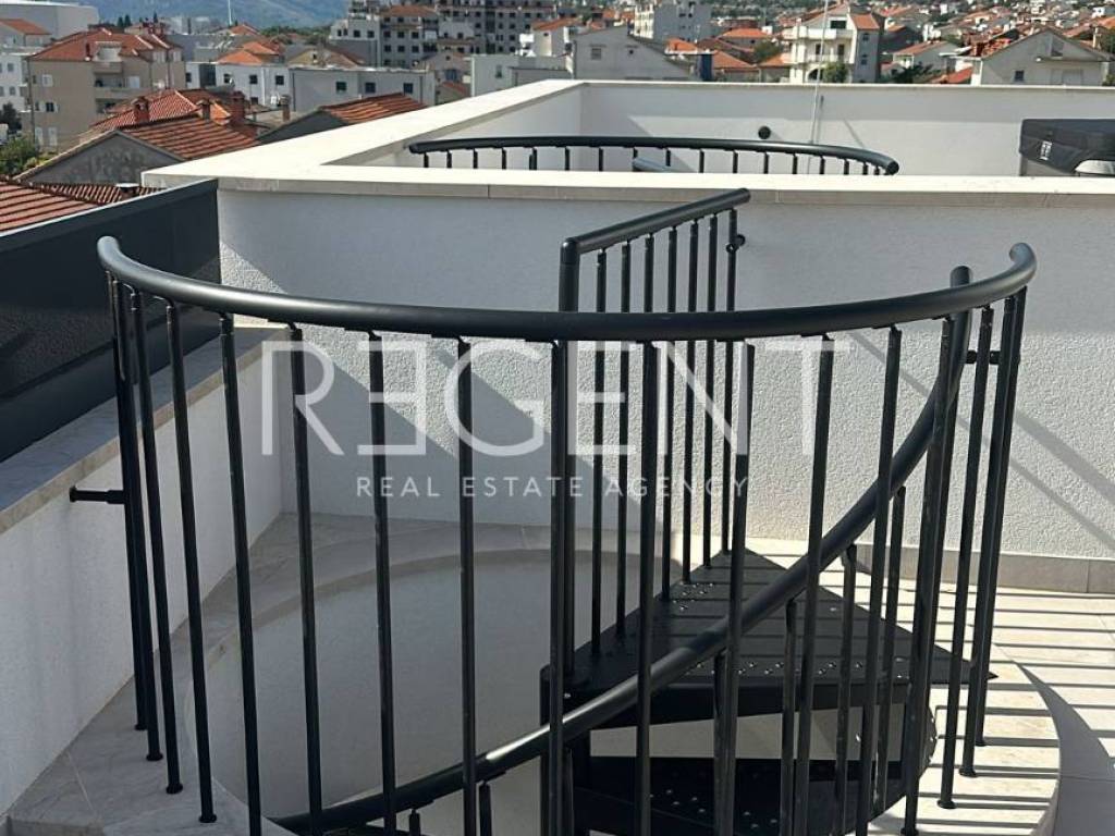 Posredujemo pri prodaji trosobnog stana sa loggiom smještenog na 2. katu manje stambene zgrade. Stan se se odlikuje promišljenim rasporedom, a sastoji se od zatvorenog stambenog dijela, balkona sa stubištem i prostrane privatne krovne terase. Stan ima ukupnu neto korisnu površinu od 71,56 m², a sastoji se od: Hodnika – 4,68 m² Dnevnog boravaka s kuhinjom i blagovaonicom – 22,97 m² Kupaonice – 4,05 m² Spavaće soba 1 – 10,31 m² Spavaće soba 2 – 10,53 m² Balkona – 8,48 m² Krovne terase – 67,59 m² Stan je opremljen podnim grijanjem u svim prostorijama, a temperatura se regulira zasebno za svaku prostoriju putem digitalnih termostata. U dnevnom boravku nalazi se aluminijska klizna stijenka koja omogućuje izlaz na balkon. Svaki stan ima predviđenu ugradnju klima uređaja s trial sustavom, koji omogućuje hlađenje više prostorija odjednom. U hodniku, kupaonici, kuhinji i dnevnom boravku postavlja se keramika, dok su u spavaćim sobama predviđeni laminatni podovi – uz mogućnost da kupac zatraži keramiku u svim prostorijama dok je zgrada još u fazi gradnje. U cijenu je uključeno vanjsko parking mjesto. Zgrada se nalazi na atraktivnoj poziciji, s približno 150 metara udaljenosti od mora sa sjeverne strane te oko 400 metara sa južne strane, ovisno o pravcu pristupa. Plaćanje je predviđeno po fazama gradnje, završetak radova u jesen 2025. te useljenje do kraja 2025. godine. Za više informacija, kao i razgled, slobodno nas kontaktirajte!