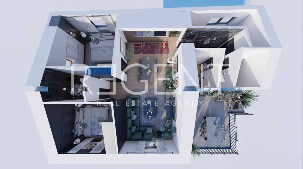 U centru Makarske smjestio se trosoban stan za prodaju ukupne stambene površine 71 m2 + 18 m2 nenatkrivene terase. Stan se nalazi u potkrovlju zgrade koja je renovirana 2024 godine. Sastoji se od: open space prostora koji obuhvaća dnevni boravak, kuhinju i blagovaonicu, prostranu natkrivenu terasu, 2 spavaće sobe, 2 kupaonice i hodnik s ulaznim prostorom. Stan je orijentiran na istok – zapad te pruža pogled na more. Oprema stana: Grijanje: Sustav grijanja, klimatizacije i ventilacije, kupaonica sadrži podno grijanje. Stolarija: Drvena. Podovi: Pločice imitacija porculana. Sanitarije: Kupaonice dolaze u potpunosti namještene. Stan je nenamješten, u potpunosti renoviran 2024 godine. Lokacija: Izrazito frekventna ulica s bogatom gastronomskom scenom. Udaljena je svega 20 ak metara od rive. Za sve upite i razgledavanje, slobodno nas kontaktirajte.