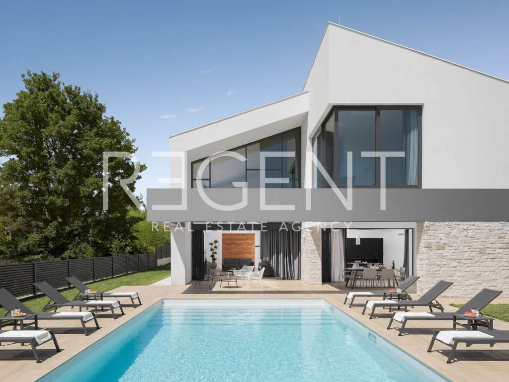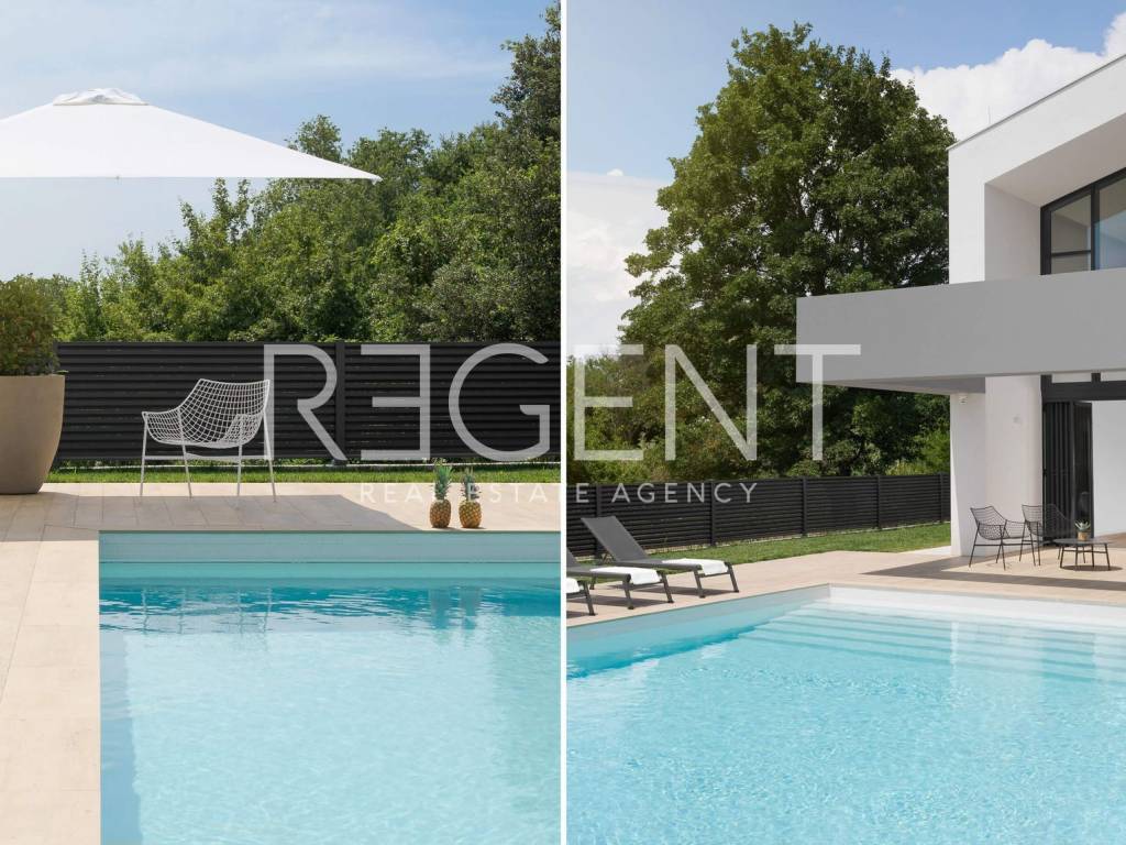 Ova iznimna vila prostire se na 400 m² unutarnjeg prostora i smještena je na prostranoj parceli od 910 m². S modernim dizajnom i vrhunskom opremom, vila nudi luksuzan život u privatnom okruženju. Vila se sastoji od četiri luksuzno uređene spavaće sobe s bračnim krevetima i četiri elegantne kupaonice. Tri kupaonice imaju tuš kabine, dok je četvrta kupaonica opremljena kadom. Uz to, tu su i dva dodatna WC-a i vanjski tuš.Vila je opremljena s WiFi internetom, a za ljubitelje sporta dostupni su stol za stolni tenis i trampoline, koji pružaju odličnu zabavu i aktivnost na otvorenom. Okućnica je u potpunosti ograđena, pružajući potpunu privatnost i sigurnost. Održavani vrt s automatskim sustavom za navodnjavanje osigurava predivan izgled tijekom cijele godine. Vila je opremljena sustavom zvučne izolacije, čime se osigurava mirno i tiho okruženje. Privatni parking omogućava jednostavan pristup imanju. Jedna od glavnih atrakcija vile je privatni bazen od 50 m², opremljen sustavom slane vode, grijanjem i hidromasažom. Unutar vile, prostor je potpuno klimatiziran s osam klima uređaja raspoređenih po objektu. Prostrana dnevna soba opremljena je SAT TV-om, DVD playerom, stereo sustavom i konzolom za igre, dok je kuhinja potpuno opremljena aparatima visoke kvalitete, uključujući aparat za kavu, mikrovalnu, hladnjak s zamrzivačem, perilicu posuđa i roštilj na ugljen. Kontaktirajte nas za više informacija o ovoj jedinstvenoj nekretnini!